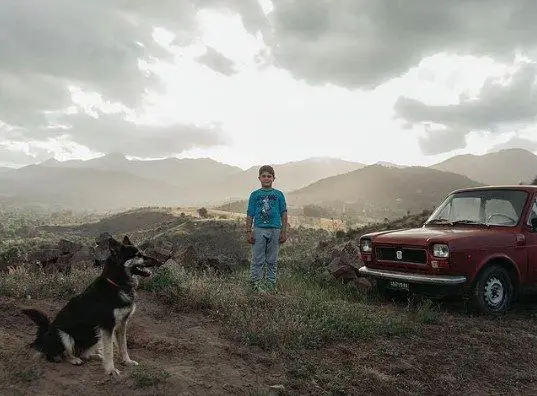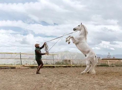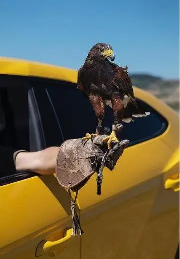 distesa verde con Lamborghini Urus gialla e cavallo con fantino