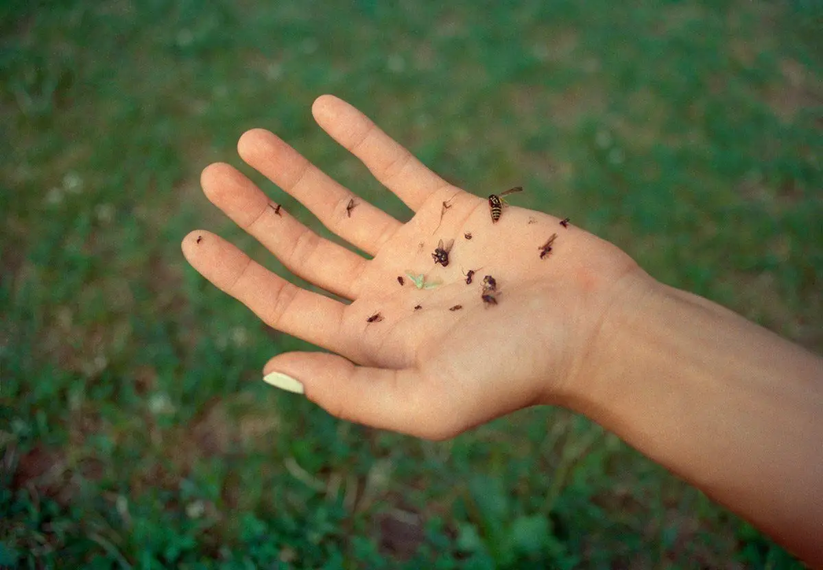 Insetti morti dentro una mano