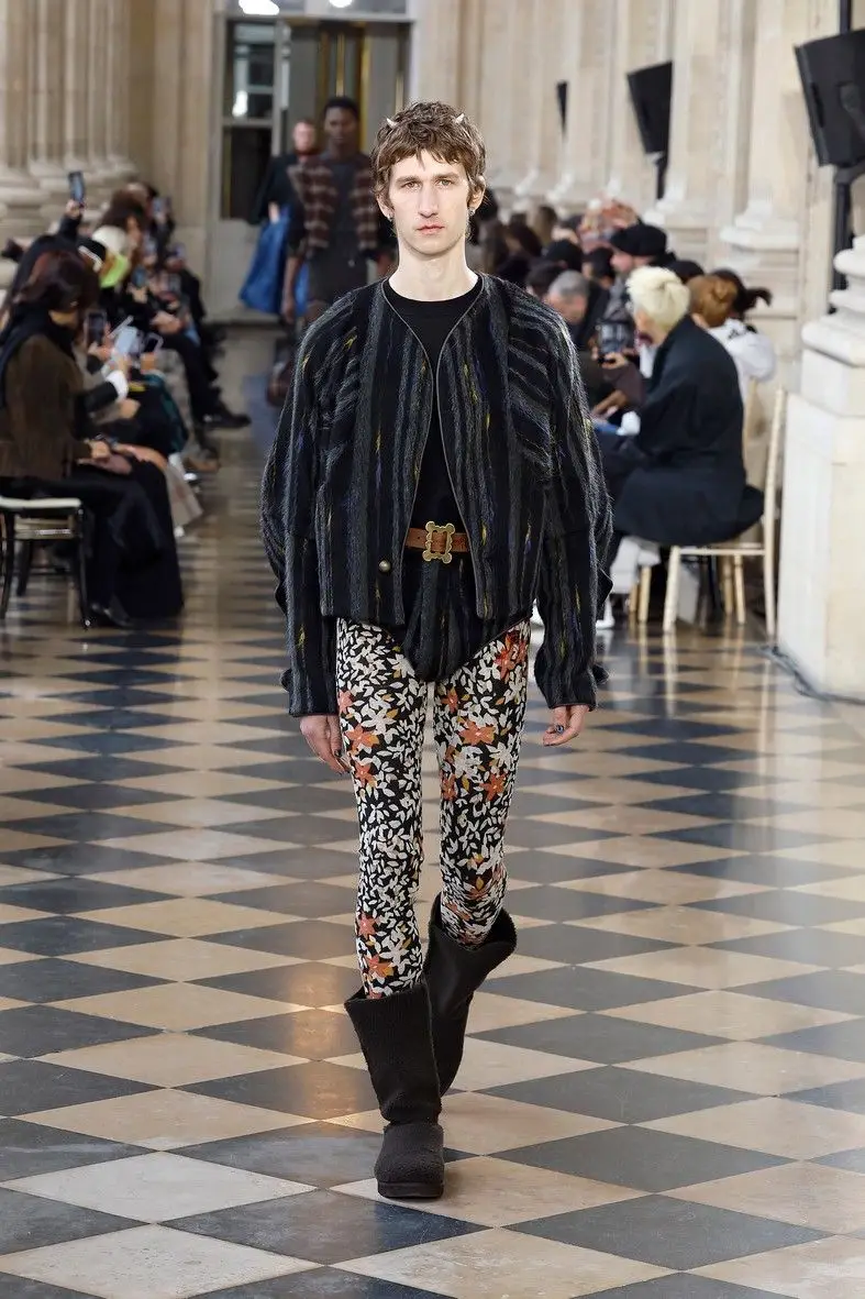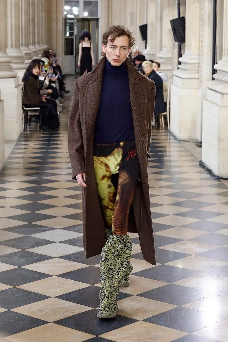 Dalla collezione Andreas Kronthaler for Vivienne Westwood uomo A/I 2023/24, l’ispirazione Arte Povera per l’abbigliamento uomo A/I 2024/25 propone: natura esposta, tronchi e rami, foliage astratti, lane disadorne.