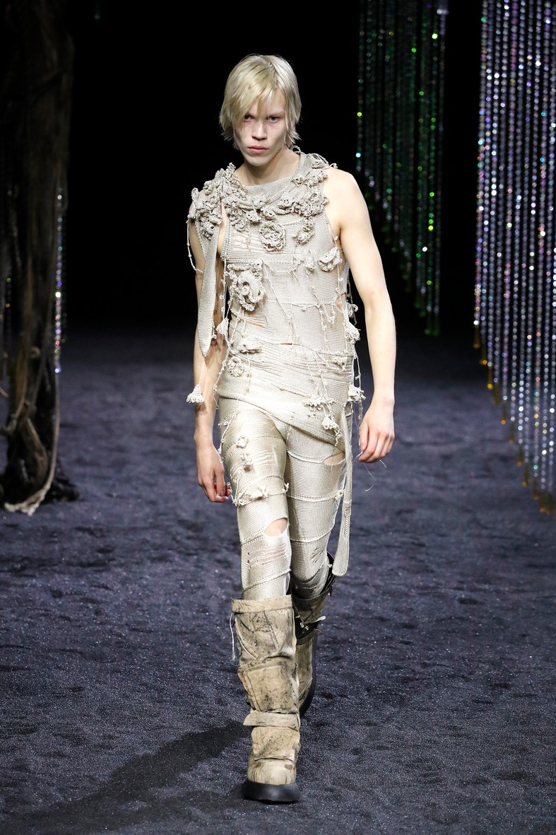 Dalla collezione Acne Studios uomo A/I 2023/24, l’ispirazione Cime Tempestose per l’abbigliamento uomo A/I 2024/25 propone: vette ammantate, rocce calcaree, croste sedimentate, aspetti wild.