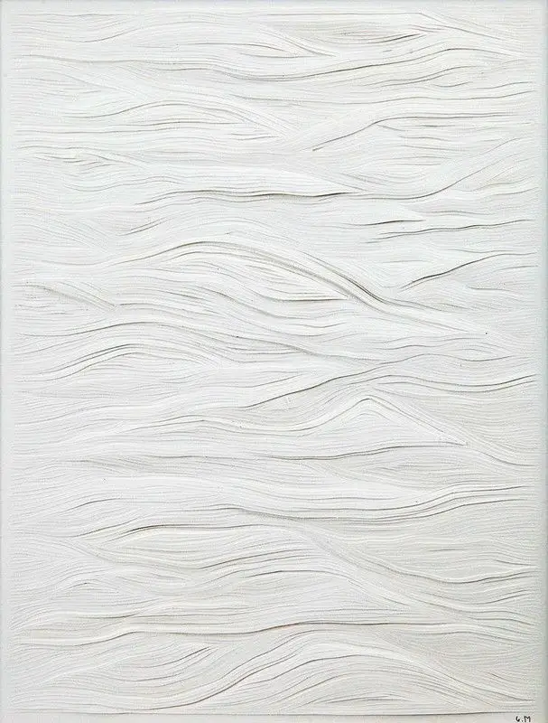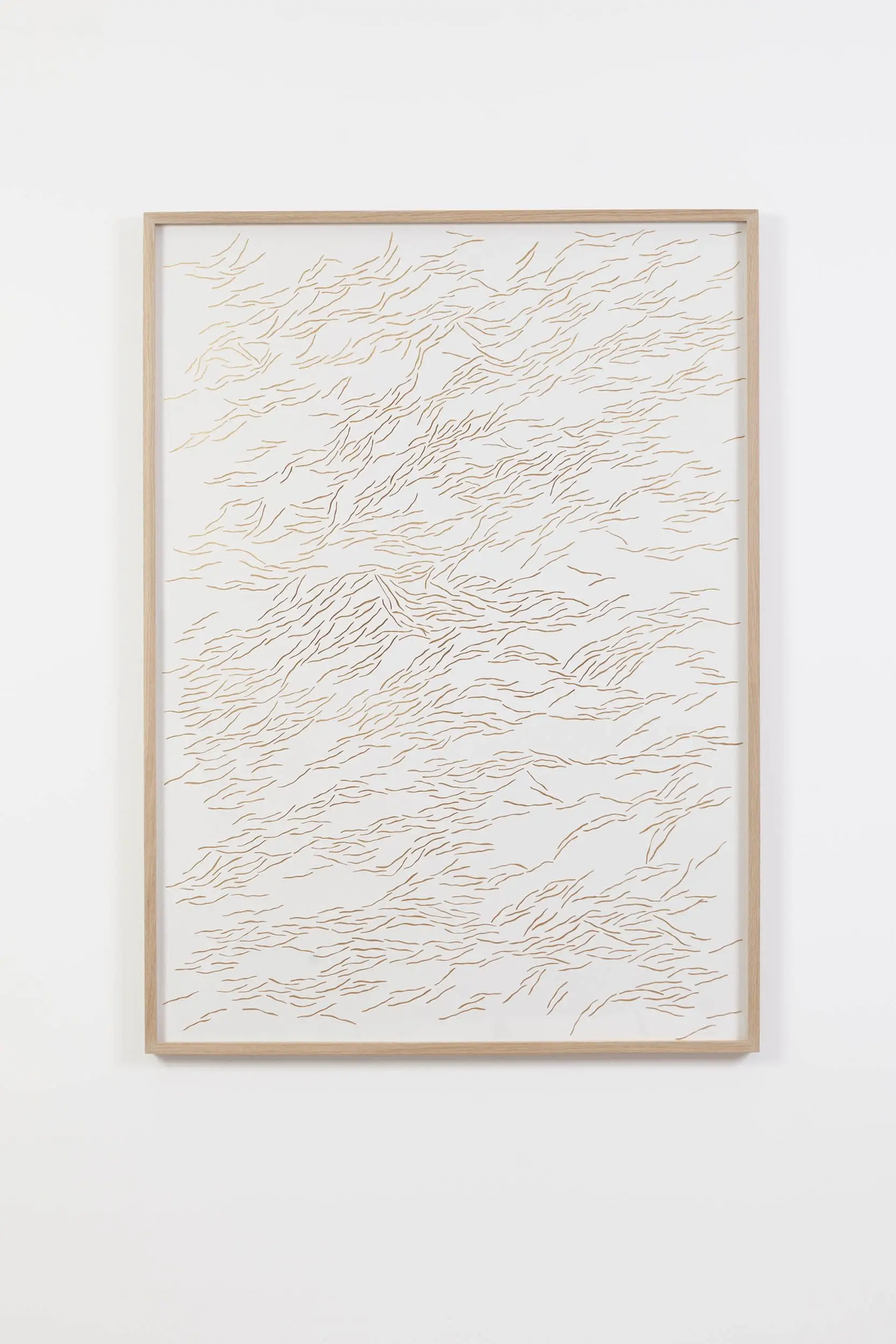 Quadro con carta tagliata con un bisturi e vernice acrilica