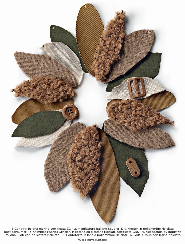 L’arte in armonia con la natura: l’esposizione site specific Arte Sella, nel cuore della Valsugana, ispira morbide lane merino certificate ZQ, tessuti in poliammide, cotone, elastam e poliestere riciclati, così come bottoni e fibbie in legno. Il tutto in una palette che omaggia le sfumature del bosco.
