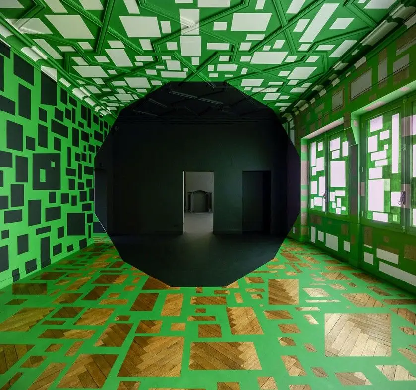 In New Perceptions, volumi capovolti, effetti speculari, prospettive invertite, alternanze illogiche e stranianti si inseriscono in una palette apparentemente consueta, fatta di bianchi polvere, carne e neri, disturbati da verdi brillanti e azzurri tersi.