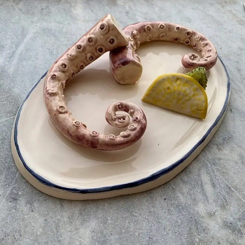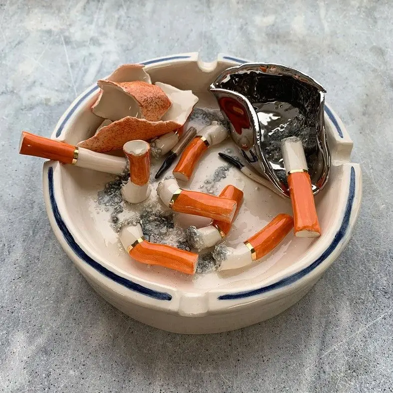 Through her practice, Alma Berrow (1992) succeeds to shed light upon some taboo topics. She creates fun and satirical ceramics that take the form of large red lobsters, condoms, shell-shaped ashtrays, or Vichy-patterned ceramic napkins. She is based in London and originally studied Art and Textiles at Falmouth University. It was over the first lockdown due to Covid-19 when she decided to explore the field of ceramics. Since then, she has been transforming chaotic table settings into beautiful, youthful pieces that convey the most contemporary form of still life.