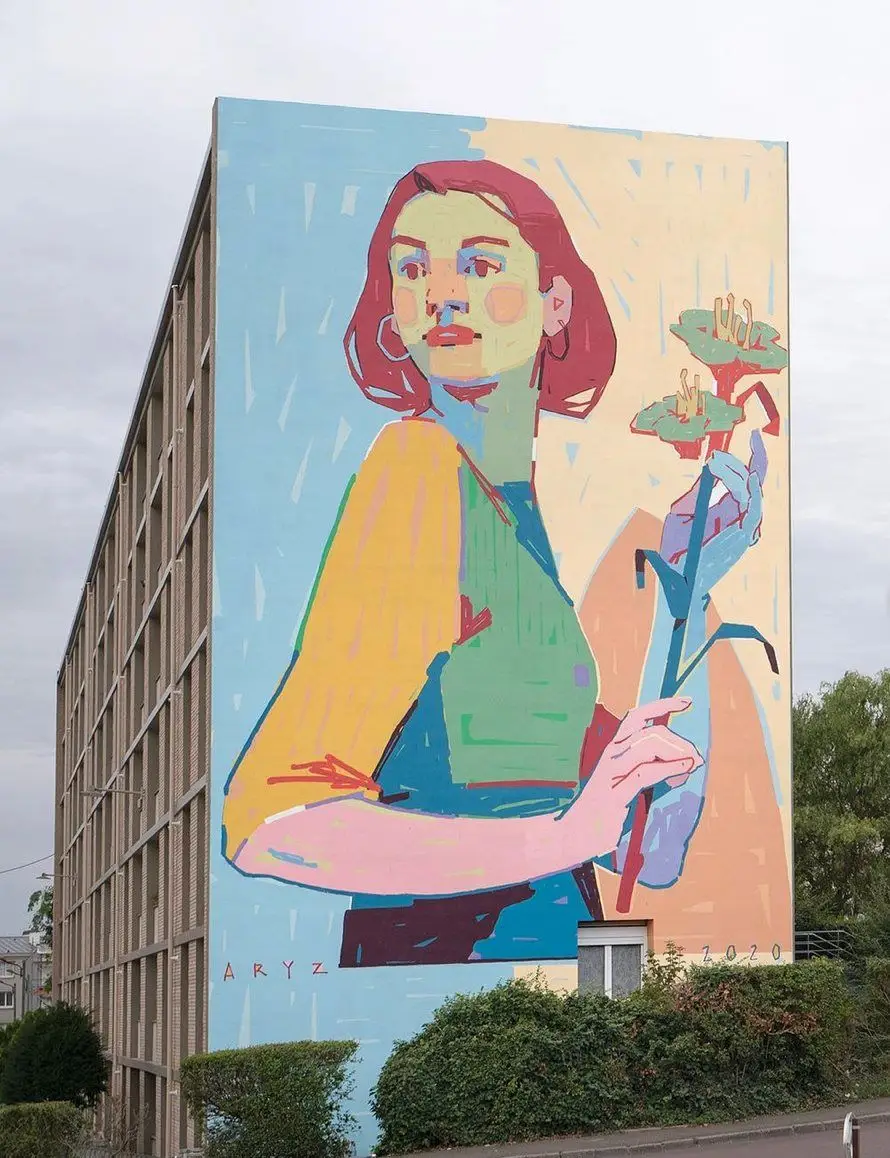 murals with woman and flowers in hand