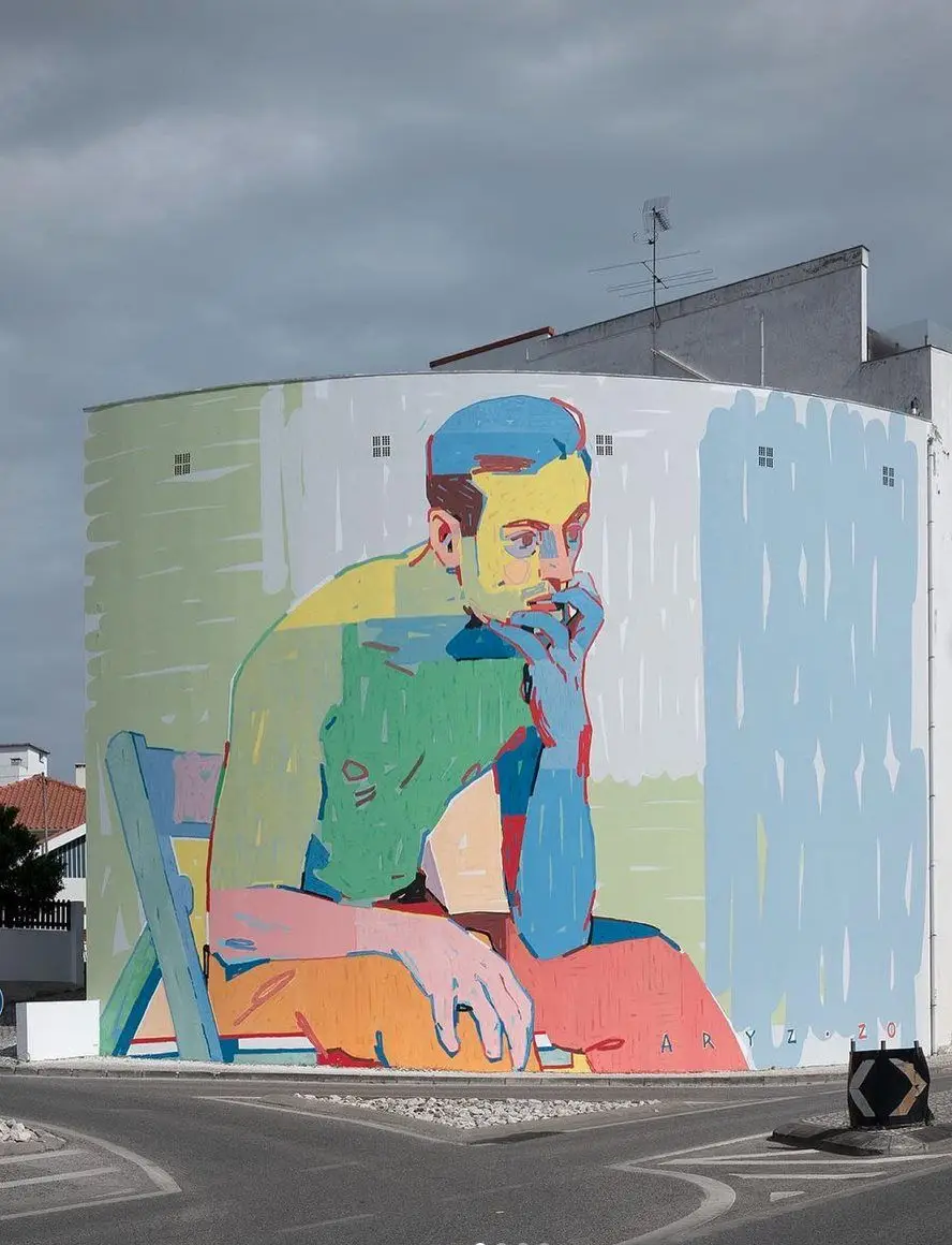 mural with pensive boy