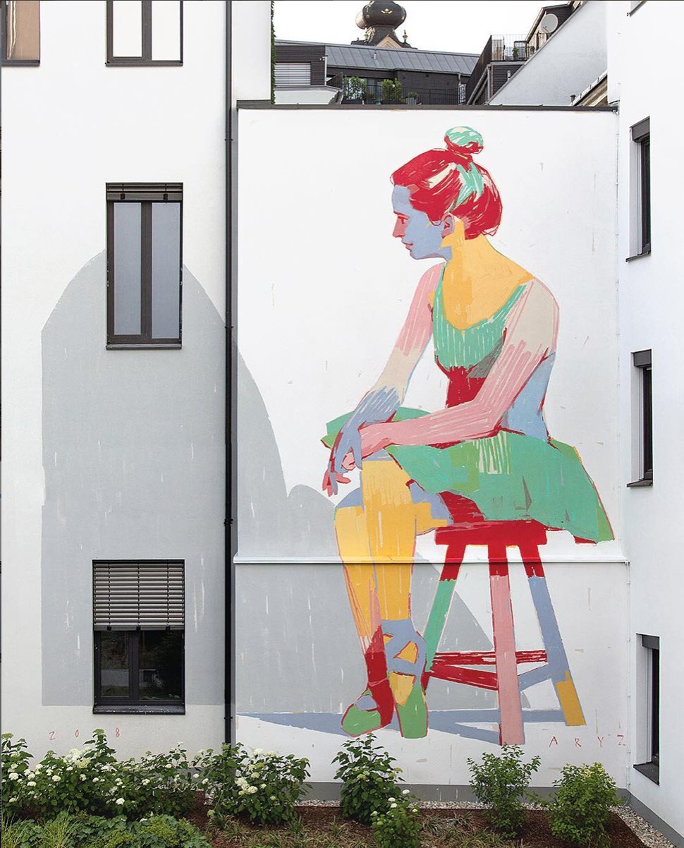 mural with dancer sitting on a stool