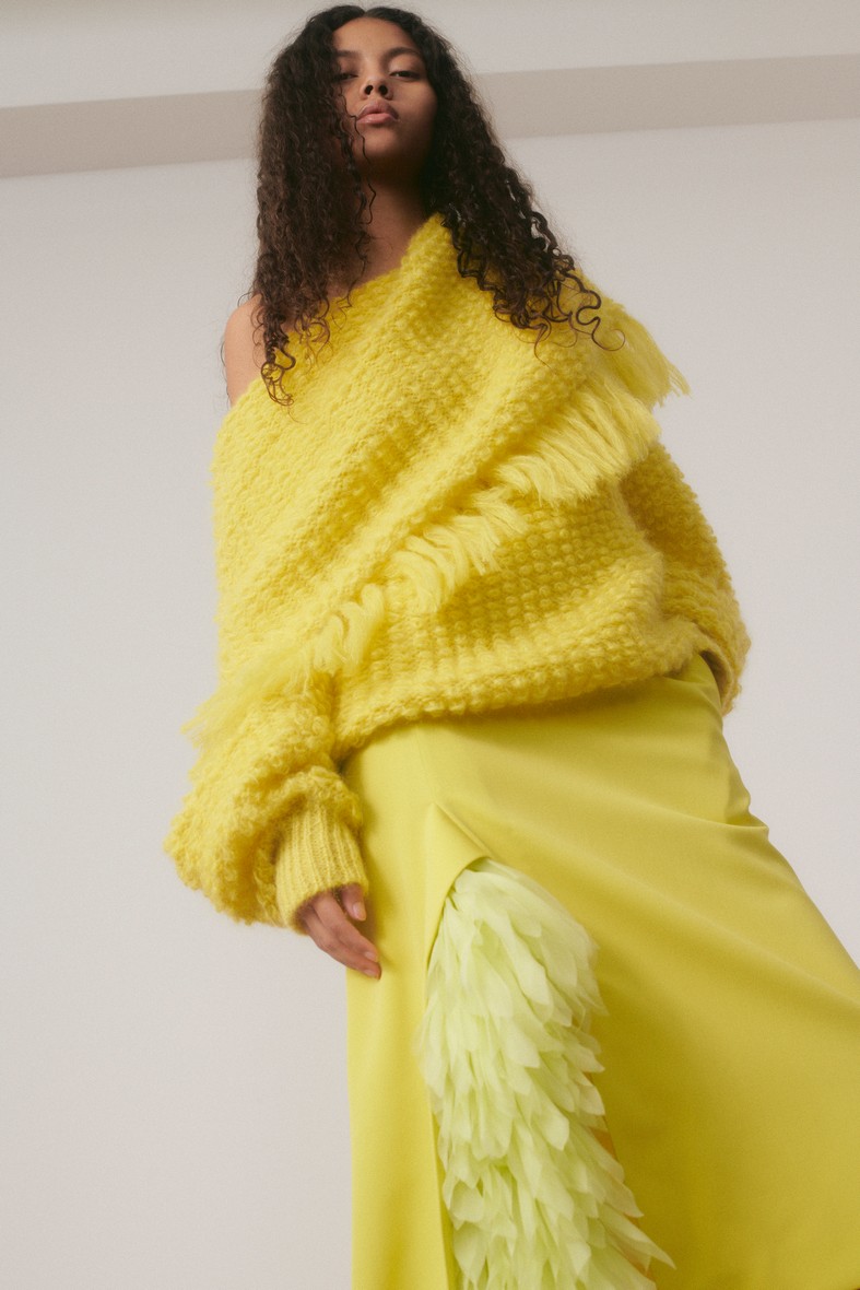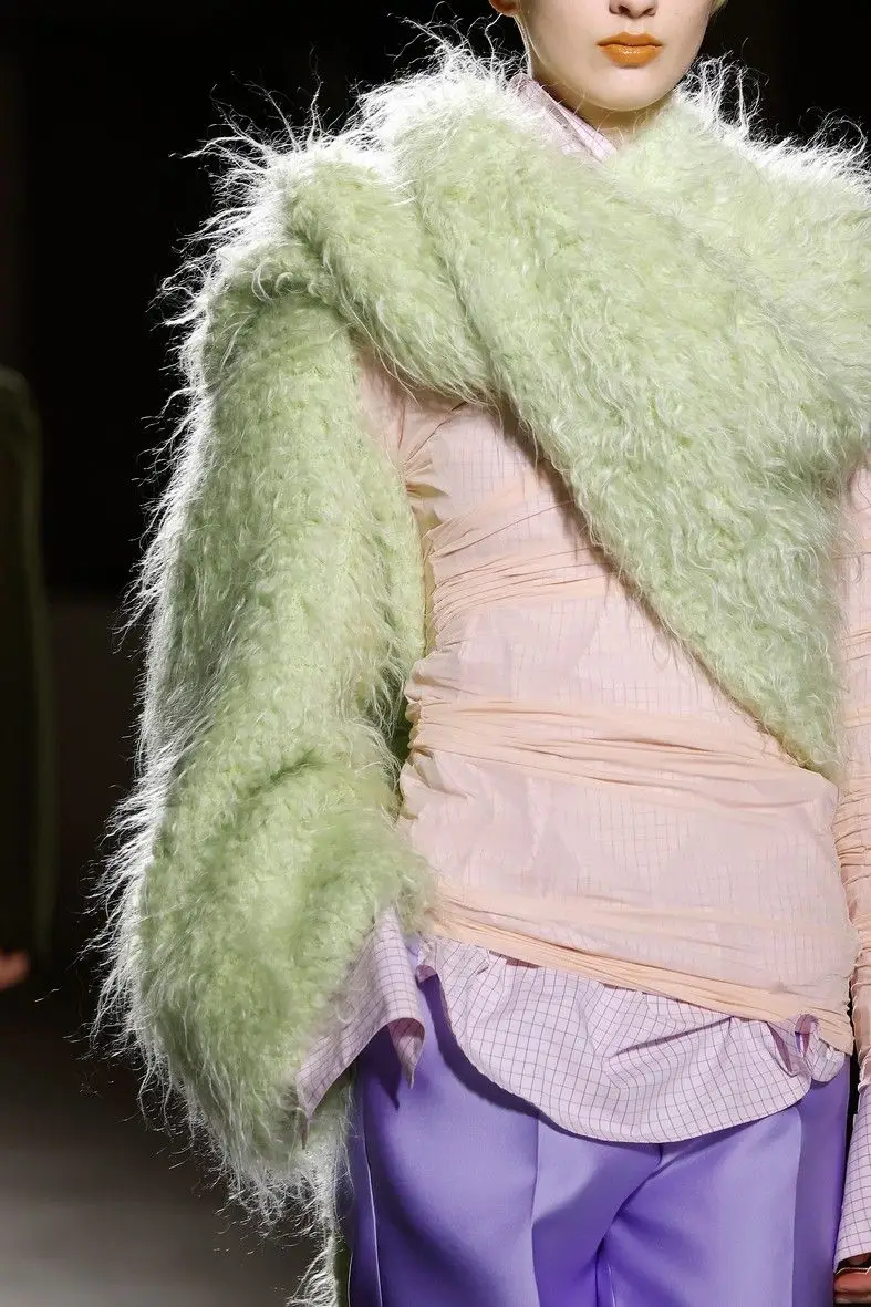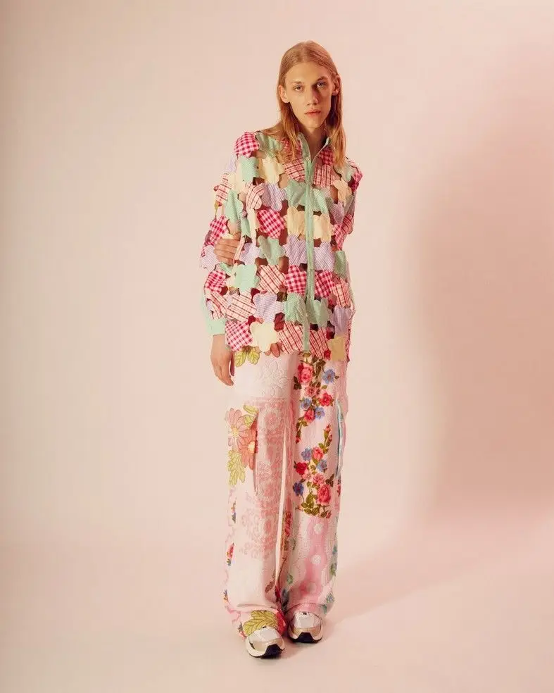 Cuddling on a sofa under a warm heavy blanket suggests, in Album, cocoon-like materials as soft as plaid. Winter woollens from the ‘70s, like that jumper seen in a photoof mum when she was young, which today we wear indoors on chilly afternoons. Traditional patterns like tartan, houndstooth and checks feature alongside soft chunky knits and crochets that give a cosy embrace as warm as a hug from the grandparents. Oversize volumes and long hemlines lightly puff up the body like the feeling of the sweetest memories.
