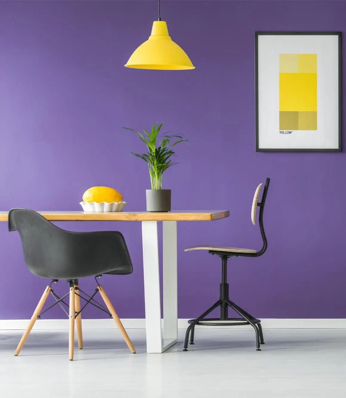 Contemporary design table, chandelier and chairs