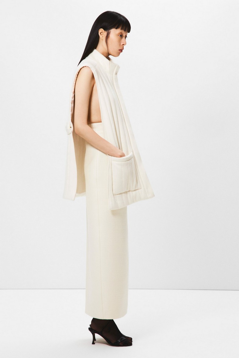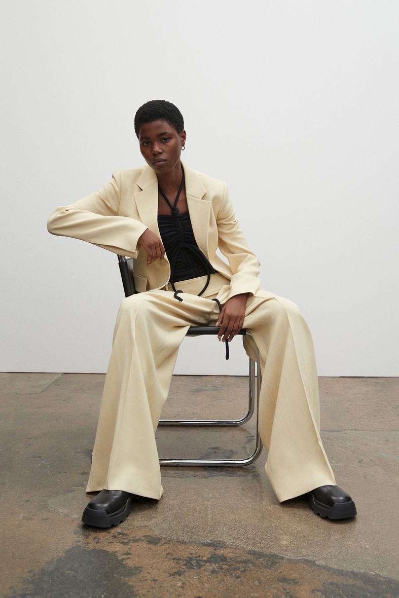 In Breathe the body is enveloped in slim-lined garments in natural and breathable materials. Suits and outerwear fall in straight lines yet with light weight. Knits and ribbed fabrics delicately caress the skin. Buttons in wood or recycled materials, canvas hang tags, gauze or perforated ribbons and patches complete purely designed looks.