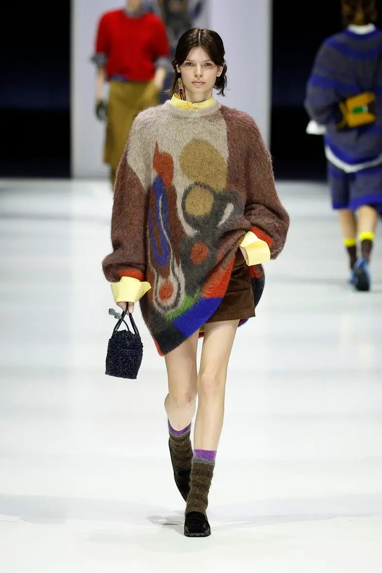 From the Anteprima A/W 2025.26 women’s collection, the Crayons knitting inspiration for A/W 2026.27 womenswear features: pastel textures, crispy colours, shaded designs, overflowing sweaters.