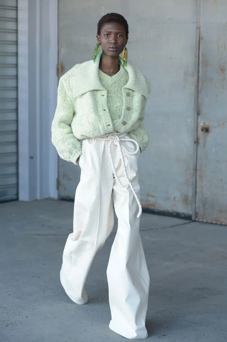 From the Veronique Léroy A/W 2022/23 women’s collection, the Crinkled pastels inspiration for A/W 2023.24 women’s clothing features: chalky colours, dusty pale tones, corrugated textures, milk and mint.