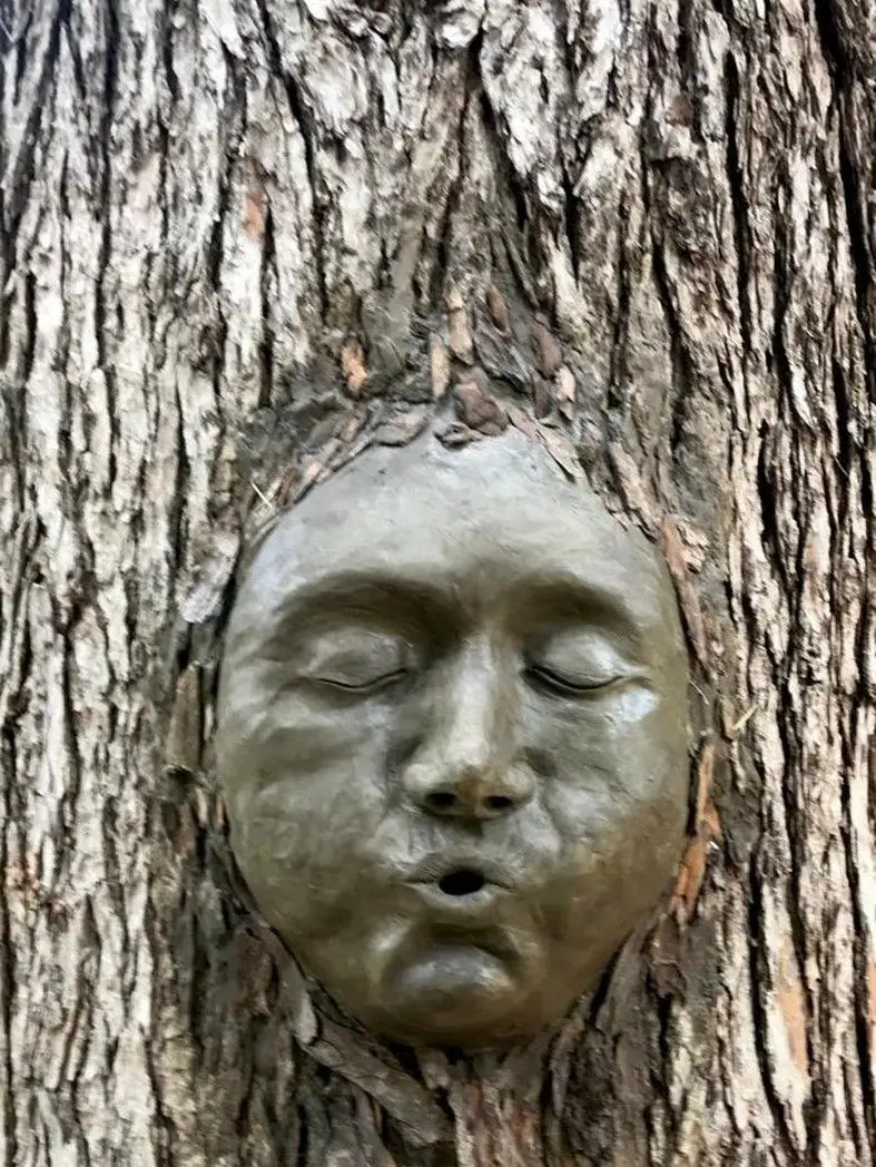 From the sculptures emerging from the waters of a lake in Dorchester to the installation immersed in the foliage of Kew Gardens in London, to the characters carved into the trunks of trees in Giardini dell’Arena in Padua: these giant faces recreated in nature provide the inspiration for a composition of sustainable lace, RWS certified wool and zips, organic cotton either pure or blended with Cupro Bemberg™, undyed merino wool and handmade textile accessories.