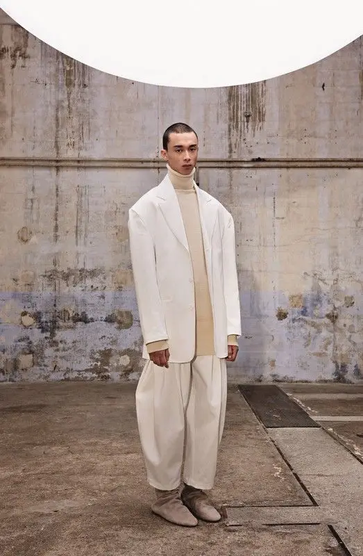 Man with oversized white jacket and trousers