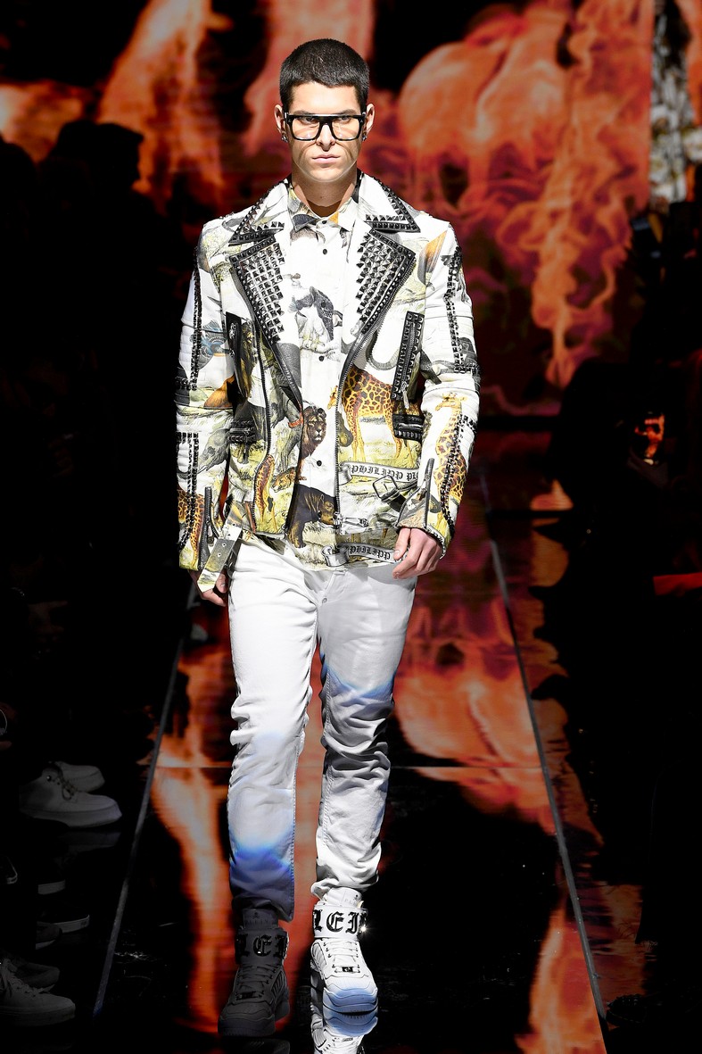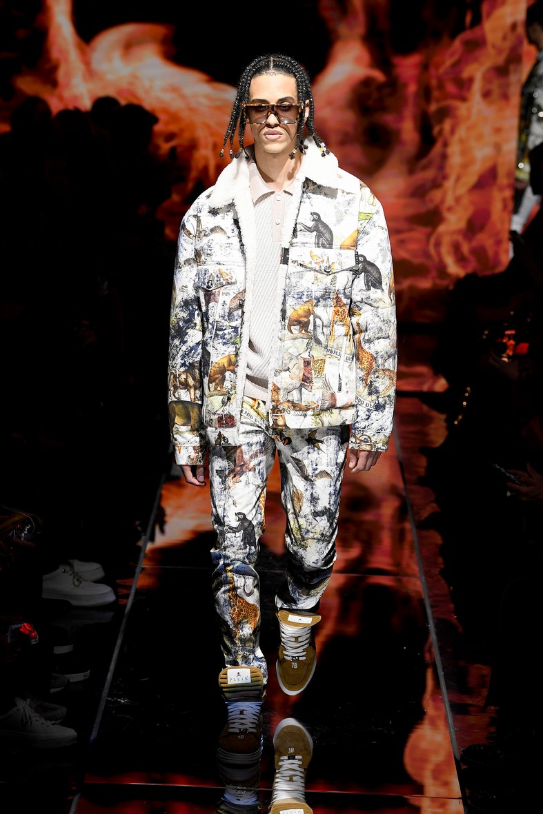 From the Philipp Plein A/W 2022/23 men’s collection, the Jungle fusion inspiration for A/W 2023/24 men’s clothing features: designs from the savannah, confused prints, stains and blotches, all-over patterns.