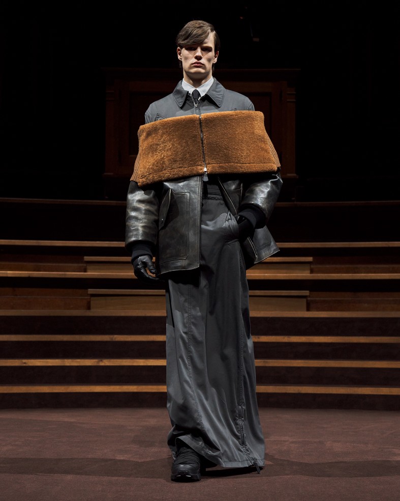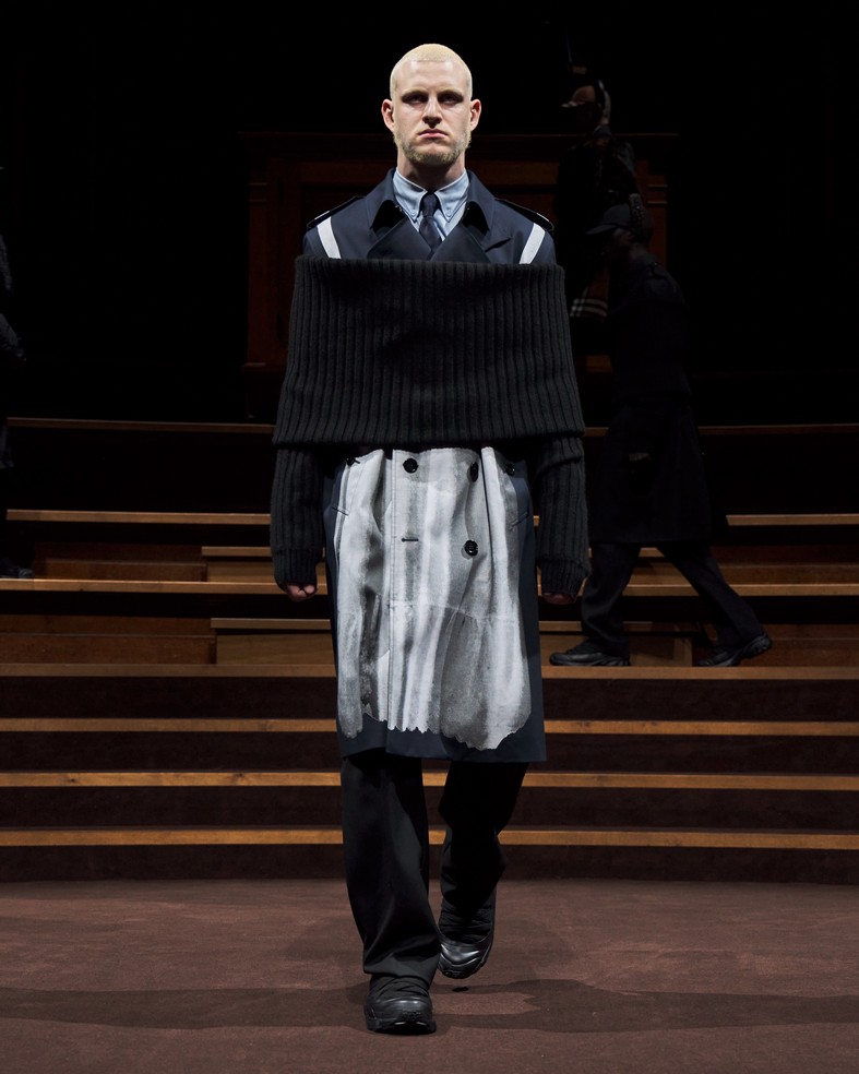 From the Burberry A/W 2022/23 men’s collection, the Metaphysical inspiration for A/W 2023/24 men’s clothing features: austere and dream-like, imposing weights, static volumes, marbled effects.