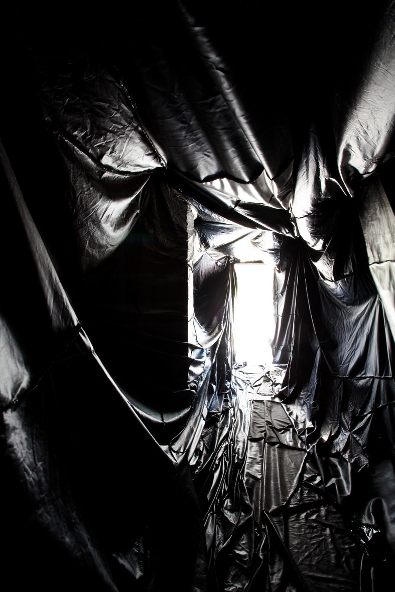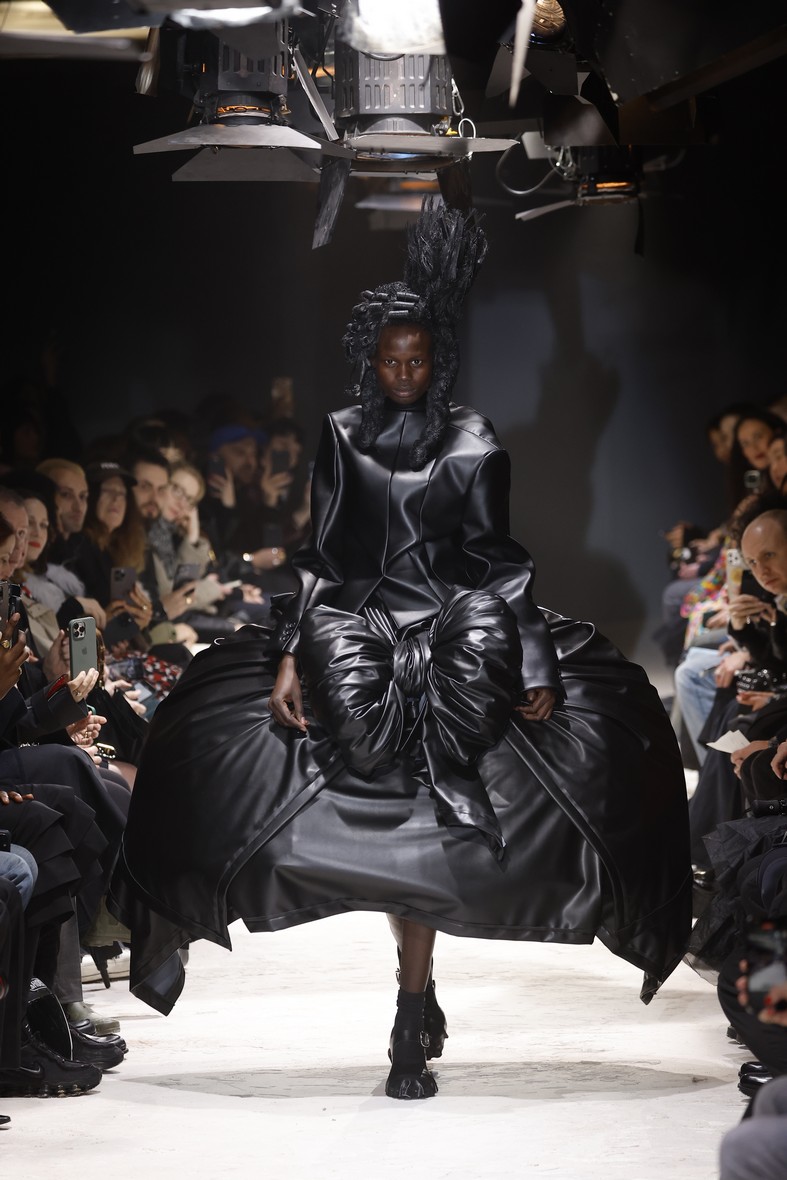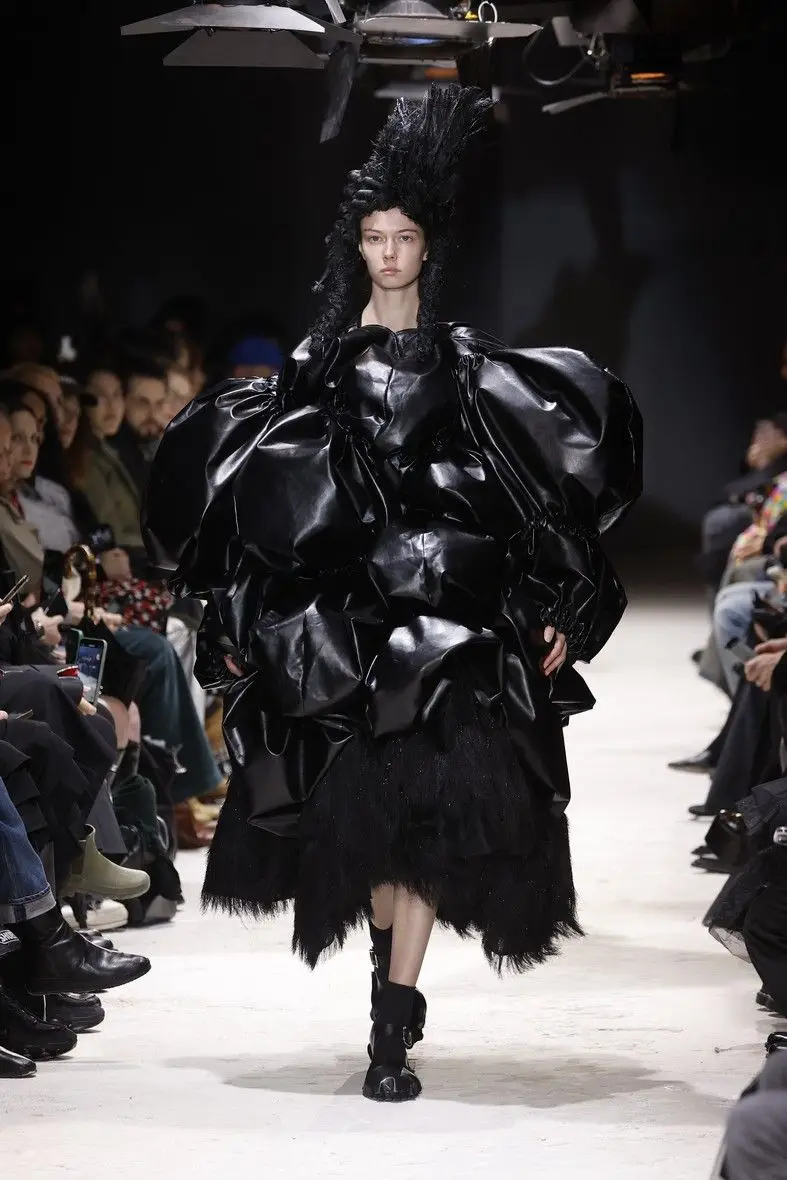 From the Comme des Garçons A/W 2024.25 women’s collection, the Waste art inspiration for A/W 2025.26 womenswear features: black bags, plastic effect, pitch and tar, bulges.