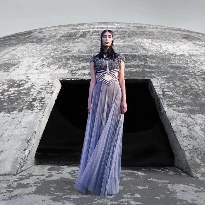 Abito plissettato e ricamato
