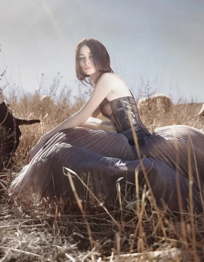 Model with cape