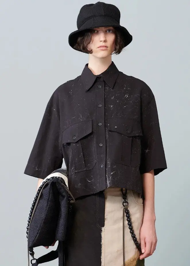 Model with cropped model shirt