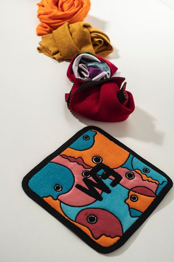 Take, for example, one of their largest ever patches, which required approximately 80 grams of waste textile fringes. These colourful fringes, which vary in colour from item to item, come off the loom soft and clean to be featured on high-quality items made to commission. They are far too beautiful to be thrown away. And using the skillful needle-punching technique, which turns loose threads into new lines and designs, these fringes become the yarn itself. This fascinating technique not only contributes to the circular philosophy but also creates a beautiful aesthetic effect.