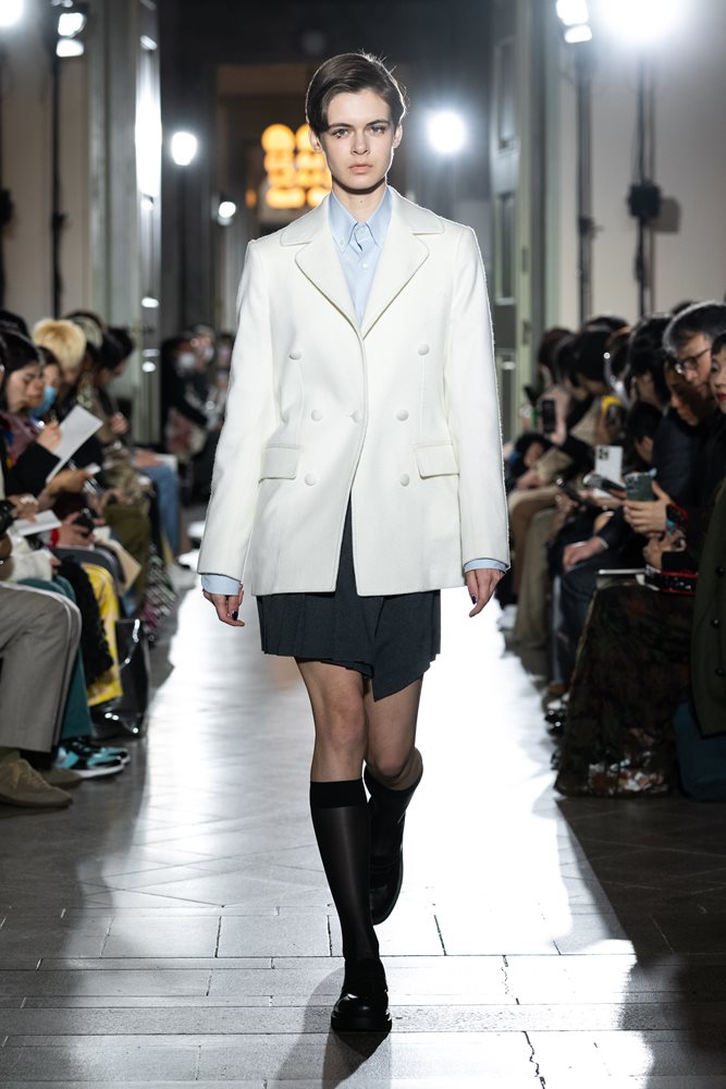 The production of the collection was realized in collaboration with Japanese and Italian craftsmen in pursuit of quality and elegance. Targeting positive and elegant women who wear a fashion atmosphere, prêt-à-couture will combine the designer’s creativity with craftsmanship and skills to sublimate school style into fashion.