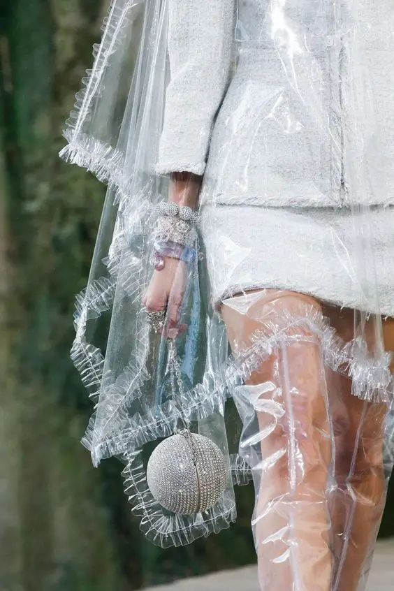 total look in enveloping transparent material