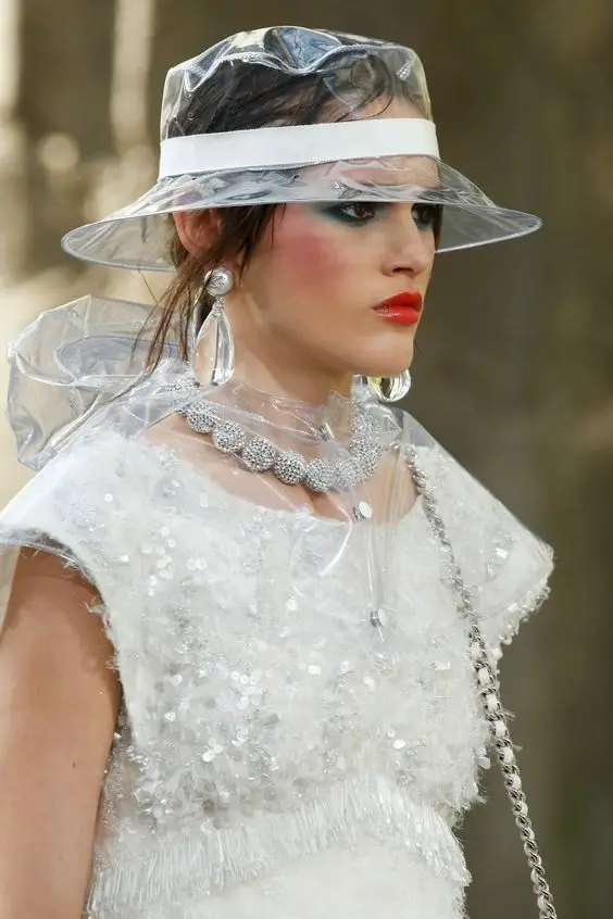 wide hat with brim in transparent material