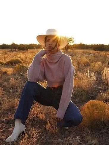 girl with western outfit in the clearing