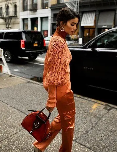 girl with orange tones stands by the roadside