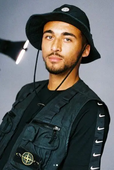 boy with Stone Island vest and hat and Nike sweatshirt