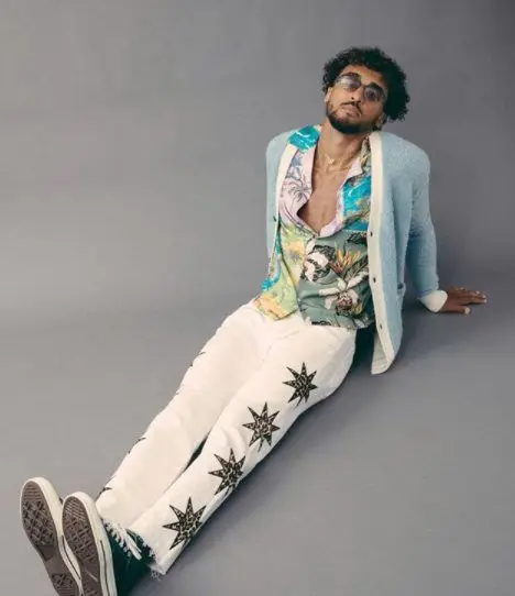 guy with flashy outfit sitting on the floor