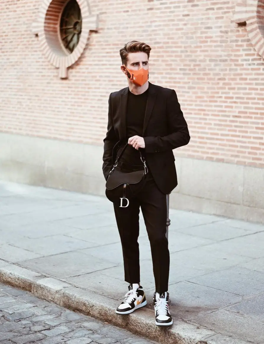 boy with black outfit, Jordan 1 and Dior saddle