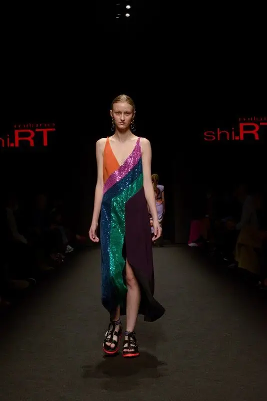 S/S 2023 womenswear style inspirations. Coloured lights, oils and watercolours, blocks of sequins, saturated colours from Shi.RT by Aquilano e Rimondi S/S 2022 women’s collection.