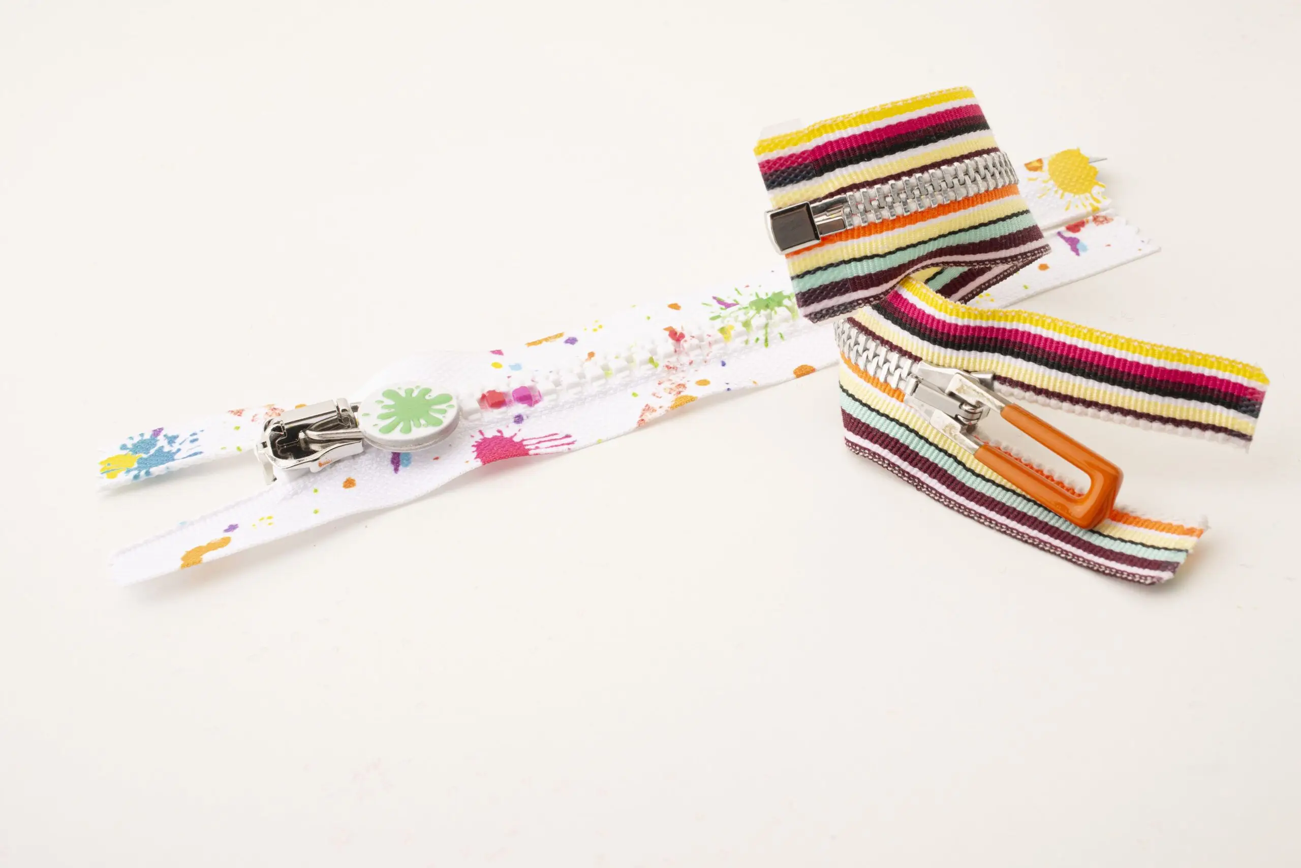 Crazed particles travel through the subways and reach the station stairs on a long-awaited morning. They dodge one another with quick, disinterested gestures, crossing paths as they go. Focused only on their destination, their thoughts look ahead to the next step, preceding the hands of the clock. In that hothouse of laboured breathing, running and suspended time that is the station, emotions and words are closely guarded. To the tune of suitcases dragged along, people wait in silence on the platform and, before their eyes, private scripts are staged punctuated by the arrival of a train. An enjambment of the verse, a line break before the next stanza. Pauses separate the words and, on arrival, the distance is reduced to the tempo of a poem. Cool, stiff materials construct curved streaks of colour that run along the tracks, shortening the distances and making the world a little smaller. Like a Lanfranchi zip that, with a smooth, relaxing gesture, seals a warm, comfortable embrace. Two tracks fitting perfectly together to protect the treasure inside a pocket. A romantic thought that the brand evokes with its gently urban and colourful design. (Exclusive content for Superzoom)