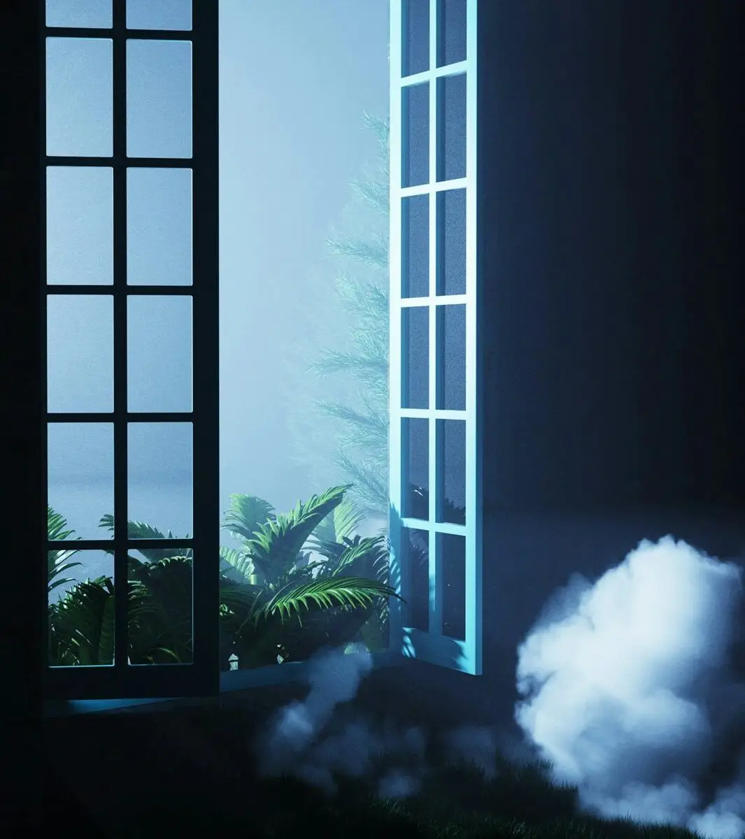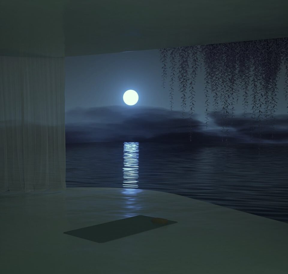 Plausible but immaterial spaces, places that cannot be visited yet are not non-existent. In an invisible dimension, the emptiness is filled with stretches in which we can walk without leaving footprints. They are abstract, secret and unrevealed areas that we can enter when the light goes out or the view becomes blurred. Scraps of reality in a bricolage workshop intersect with perceptual experiences, resulting in scenarios for untold stories. Giving dream-like form to places that do not follow architectural rules. Organic artificiality, natural power of the mind to create featherweight worlds as light as Tintunita fabrics. Artificially cold colours stolen from nature are expressed in fantastical, fabricated landscapes in which the sea and sky can reverse roles and the waters are liquid magical mirrors. (Exclusive content for Superzoom)
