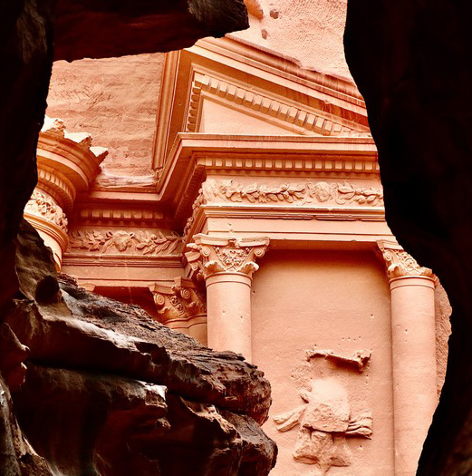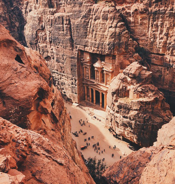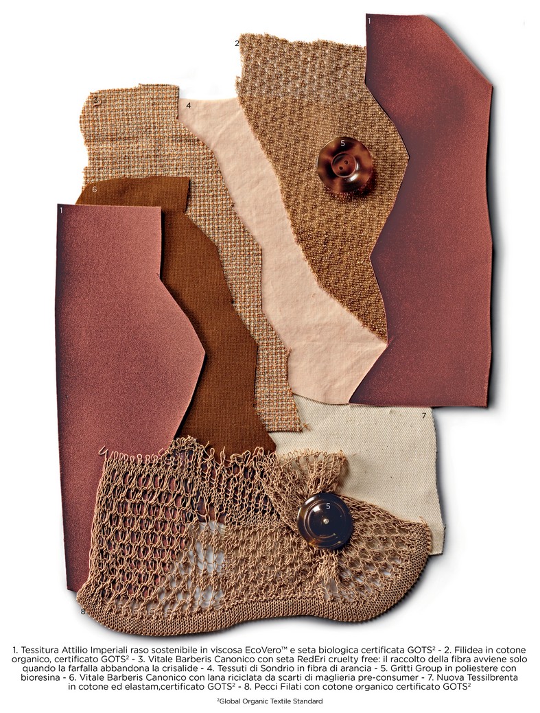 The stunning, unmistakable city built into the stone, with its pink, bronze and rocky colours, inspires an emotional story in which EcoVero™ viscose and organic and cruelty-free silk, organic cotton yarns, orange fibre or recycled wool fabrics and buttons with bio-resin recall the colours and textures of this exclusive setting.