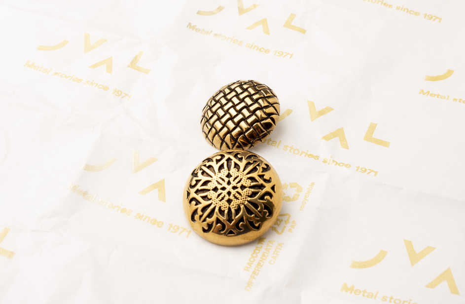 Above the tambour or capitals on the columns, stone and plaster domes rise towards the sky. Visitors looking upwards are filled with amazement and wonder. We feel tiny beneath the oculus in the mighty dome, which seems light despite its wrought-iron skeleton and glass cap. Elegantly unadorned, its pale gold tint generates a pale light inside the enormous architecture. The largest and oldest are also the most sumptuous, adorned with didactic frescoes in gold plaster frames and angelic high reliefs. Embodying people’s attempts to depict a divine idea, a frame at the height of the precious sunlight caressing J-Val’s accessories.The latter fully absorbs the regal, sophisticated and artistic essence of these elements, which have achieved the highest point of historical architecture. J-Val translates them into golden metal engraved with decorations and shadows in which black is not synonymous with darkness but a companion to the light reflected on them. (Exclusive content for Superzoom)