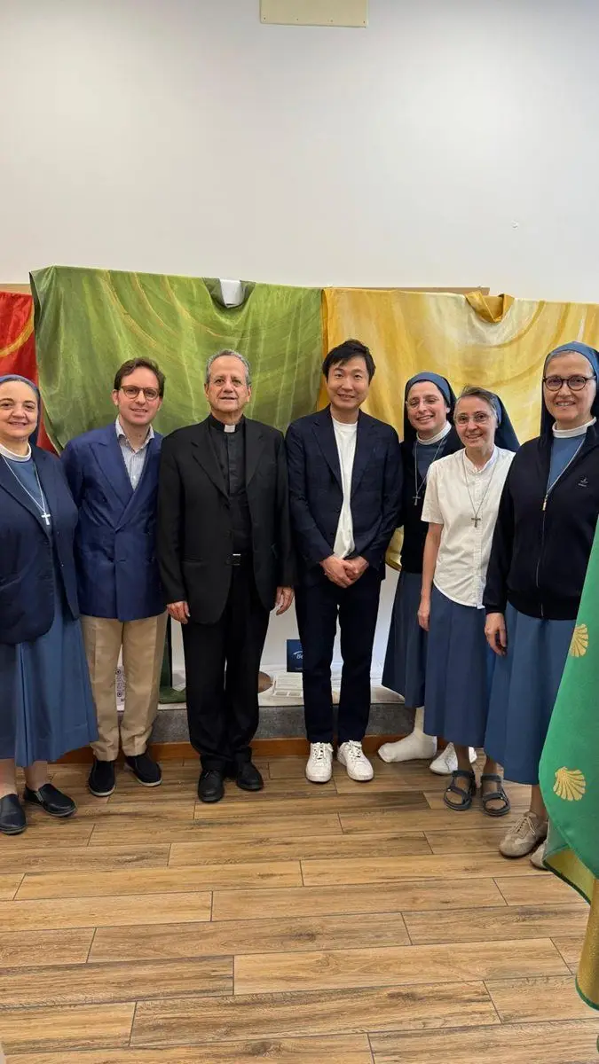 La collezione ‘Popolo in cammino – in occasione del Giubileo 2025 – Pellegrini di speranza’ presenta paramenti liturgici tra cui casule, dalmatiche e piviali. Durante l’evento, Ettore Pellegrini, Marketing & Sales Manager di Asahi Kasei Fibers Italia, e Junshu Furusawa, CEO e Membro del Consiglio di Amministrazione di Asahi Kasei Fibers Italia, erano presenti per dare il benvenuto a tutti gli ospiti. La scelta di Bemberg™, il marchio della fibra Cupro di Asahi Kasei, una fibra di cellulosa rigenerata ottenuta dal processo a ciclo chiuso con i linters del cotone, è stata il risultato di un percorso iniziato con la partecipazione a Milano Unica e proseguito con diverse presentazioni di tale materiale a Roma. Il Cupro Bemberg™ si è distinto per la sua unicità e il suo impatto sull’economia circolare. Grazie alla sua filiera trasparente e tracciabile, offre credenziali di sostenibilità certificate e qualità premium. La fibra rispetta la forma e la caduta, con una mano davvero unica e preziosa: fresca d’estate, con un eccellente controllo dell’umidità, offre un comfort superiore e un tocco morbido e impalpabile sulla pelle.