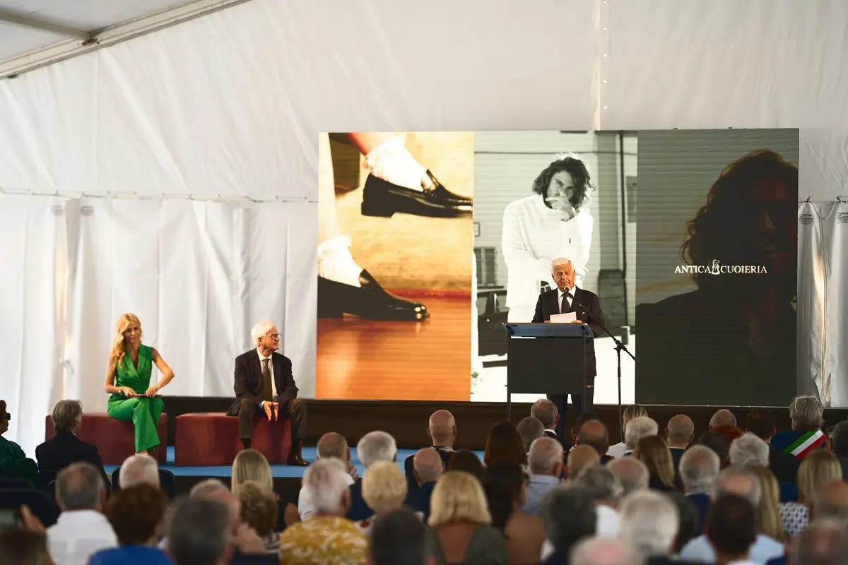 La famiglia Soldini ha festeggiato con la famiglia allargata, ovvero con i dipendenti (dai primi assunti nel ‘45, quando erano ancora giovanissimi), i collaboratori, i fornitori, i rivenditori e la rete commerciale tutta, l’ottantesimo anniversario del Calzaturificio. Rossano e Marco Soldini erano veramente emozionati. Adolfo Urso, Ministro delle Imprese e del Made in Italy, non è voluto mancare, così pure gli imprenditori e amici di sempre: Luca Cordero di Montezemolo, Paolo Zegna, Massimo Cerruti, la famiglia Nero Giardini, gli Auricchio, gli Snaidero, i Ferragamo, per citarne alcuni; oltre ai rappresentanti di associazioni di categoria come Confindustria, il Prefetto e Vice Questore di Arezzo.
