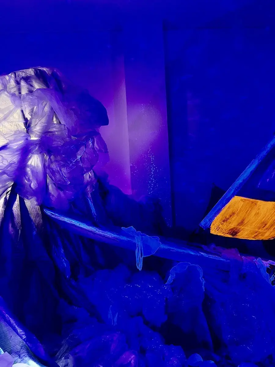 Gli abiti dismessi diventano onde immobili: non moda ma materia di un eccesso che ha perso slancio. In questa stanza il vento non soffia: resta la domanda, asciutta e attuale, su ciò che accumuliamo e su quanto ci costi liberarcene. In un presente in cui l’abito è linguaggio e status ma anche trappola, Under-Wear ci interroga su quale vento stiamo seguendo. I panni – residui del fast fashion, del desiderio compulsivo, dell’identità prêt-à-porter – diventano materia e paesaggio: non decorazione ma quesito. Siamo arrivati a un punto saturo, in cui la merce promette felicità e spesso confonde valore e prezzo. Al centro dell’installazione c’è la vela appartenuta a Diego Benecchi: una presenza che porta con sé una storia di impegno e di città.