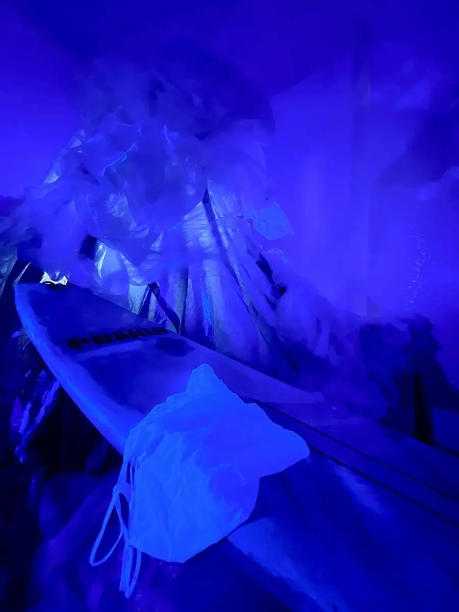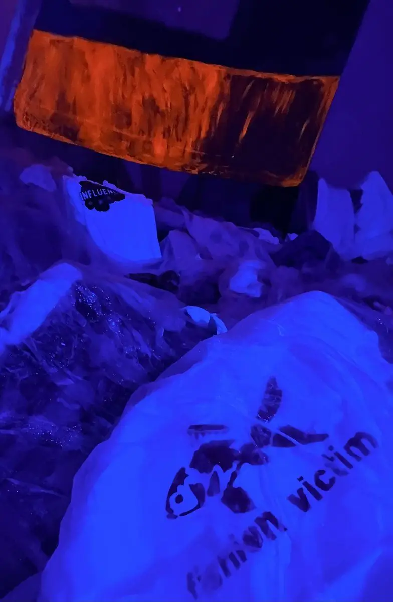 Nel cuore di una zona che porta con sé la memoria del lavoro e delle correnti sotterranee della città, una vela fluorescente emerge da un accumulo di abiti dismessi. È un windsurf nato per prendere vento e direzione, ora fermo, intrappolato in un paesaggio di tessuti residui. In occasione di Art City Bologna 2026, Filomena Guzzo trasforma con Under-Wear lo scarto del fast fashion in una scena potente, che parla di saturazione, spreco e del peso – materiale e simbolico – delle cose che continuiamo ad aggiungere. Il titolo gioca su un doppio livello: Underwear, ciò che resta sotto, intimo, nascosto, vero, e Under-Wear, ciò che indossiamo e che, a volte, finisce per indossare noi.