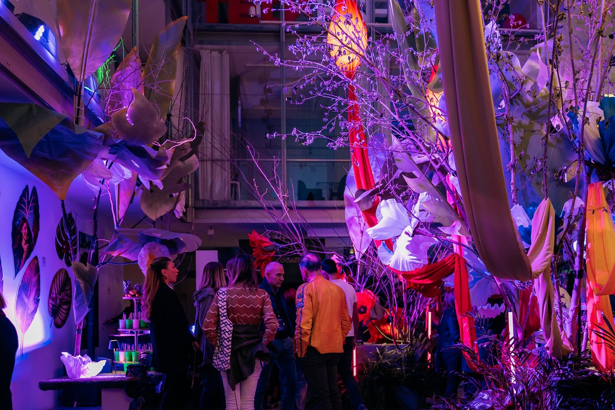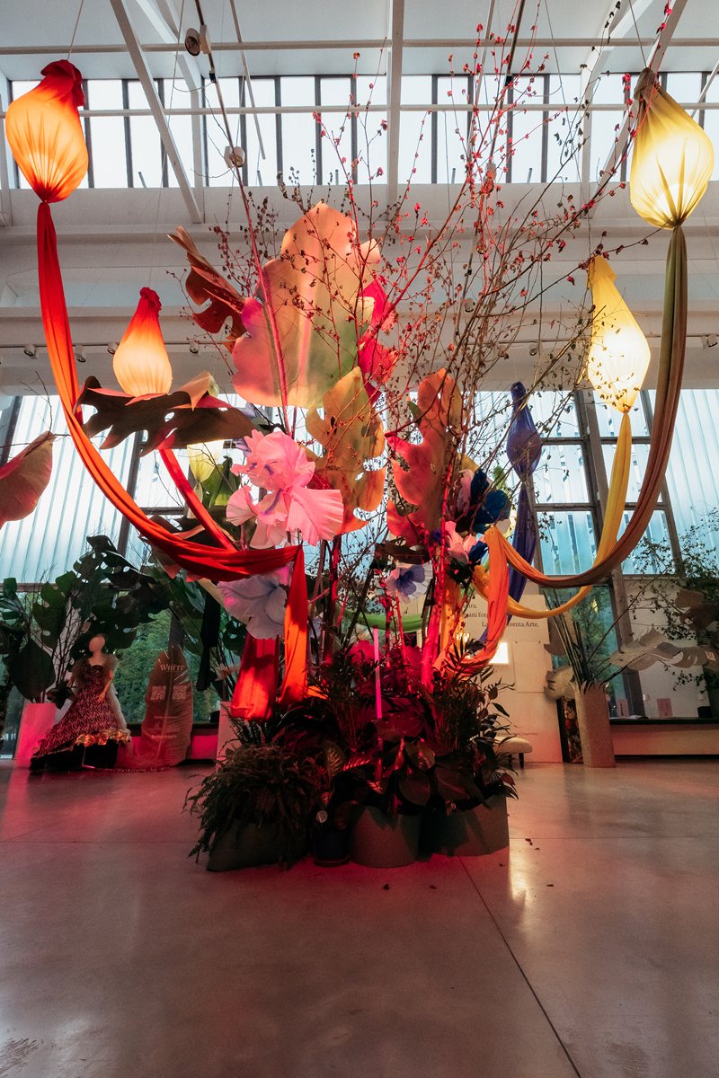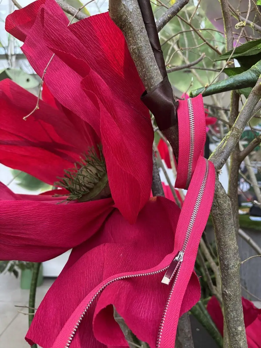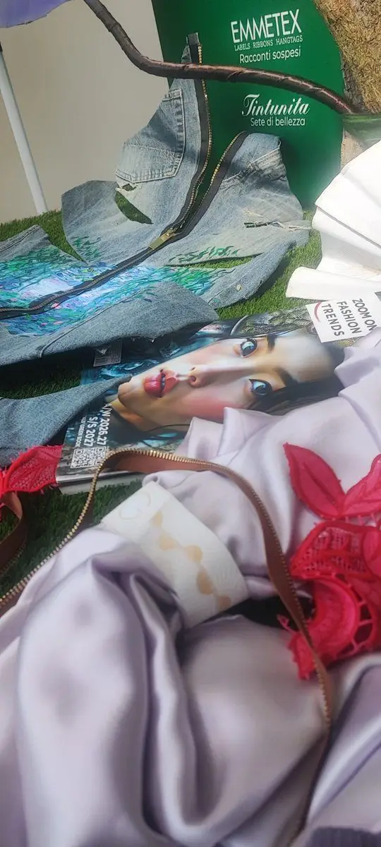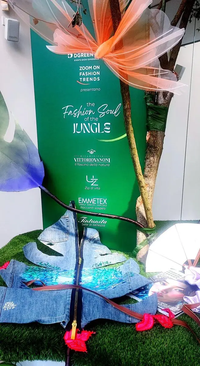 Assieme al Salone del Mobile 2026 si è conclusa anche la Milano Design Week, durante la quale la testata Zoom on Fashion Trends ha partecipato ad una partnership memorabile con D Green Design, azienda specializzata in allestimenti ispirati alla natura. Il progetto ha coinvolto quattro aziende fornitrici di materiali per alcune delle più prestigiose Maison del fashion system, sotto la direzione artistica di Peter Vlab, creativo di D Green Design e autore del concept scenografico. A fare da cornice è stata la European School of Economics, esclusivo campus universitario di Via Tortona. Tra i protagonisti, Emmetex con il Jungle Butterfly Tree decorato dall’etichetta realizzata per l’occasione in un formato 50 x 150 cm e con la Tavola della Giungla impreziosita da etichette e accessori; Tintunita, che ha dato vita alle suggestive liane di seta che hanno avvolto e accarezzato i visitatori; Unizip, che ha trasformato le proprie zip in esperienze sensoriali, permettendo di “aprire” le grandi foglie della giungla; e Ricamificio Vittorio Vanoni, che ha fuso l’antica arte del macramè con la fragilità poetica delle foglie, creando un linguaggio capace di evocare tatto, sogno ed esotismo urbano.