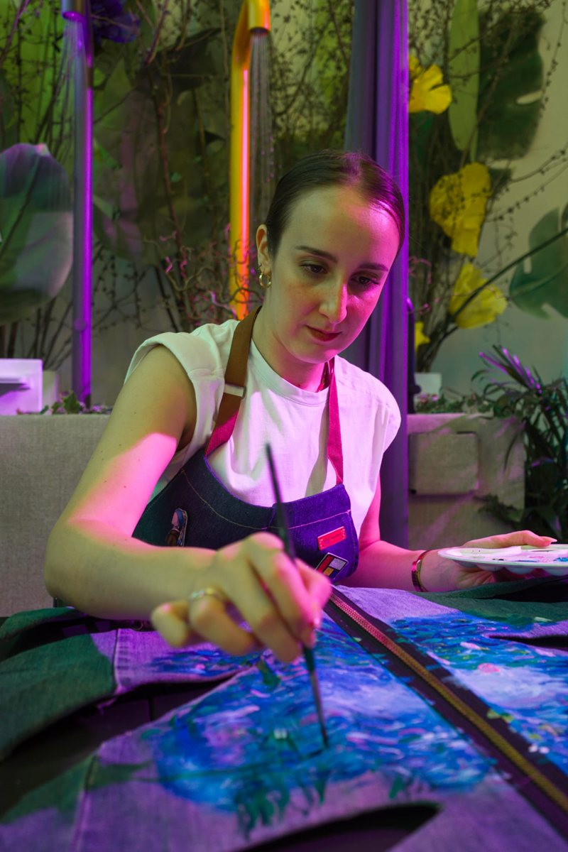 La settimana si è conclusa con la performance artistica di Laura Scalzo, in arte Elle_ized, che dal 2020 trasforma il denim in superficie narrativa reinterpretando capolavori della storia dell’arte e dando vita a creazioni uniche dipinte a mano. Ogni pezzo diventa così un dialogo tra identità e materia, tra gesto spontaneo e ricerca estetica. In questa occasione, le foglie in denim sono diventate simbolo della creatività che ha attraversato l’intera installazione Urban Jungle.