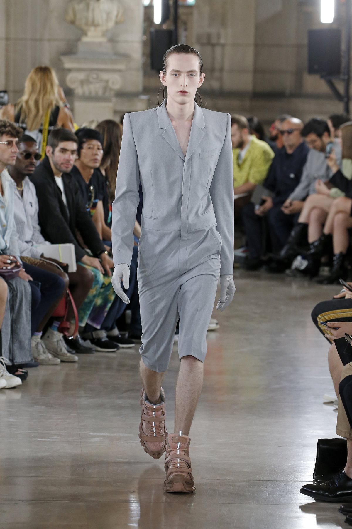 Modello con tuta elegante grigia