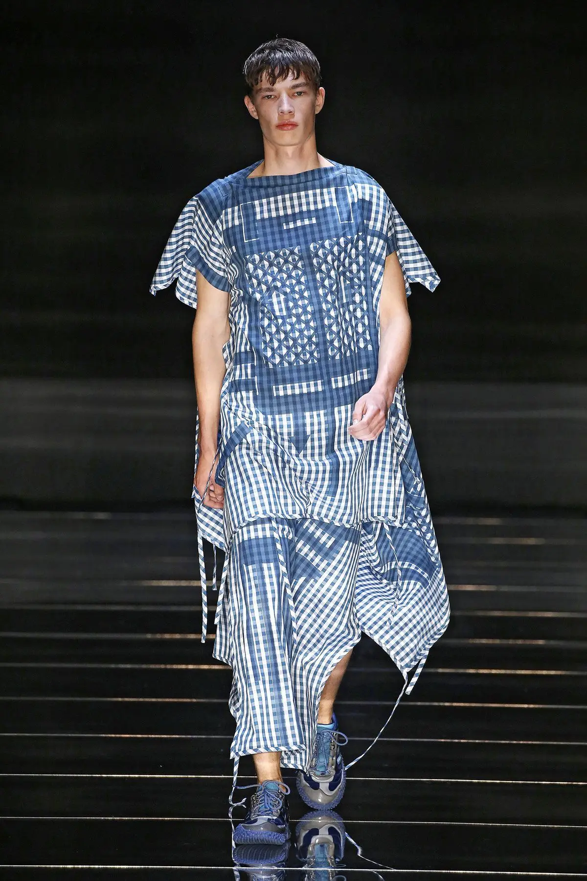 Abito lungo in tartan con stampe