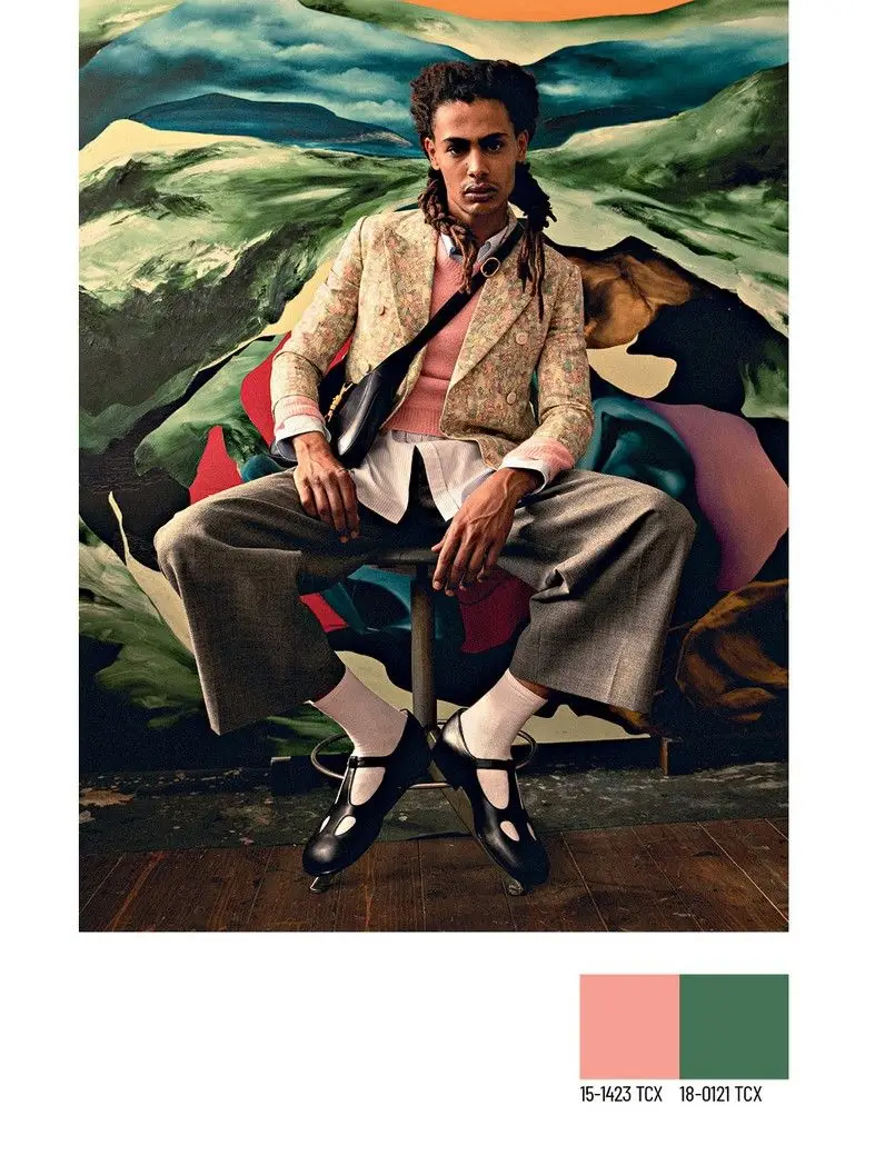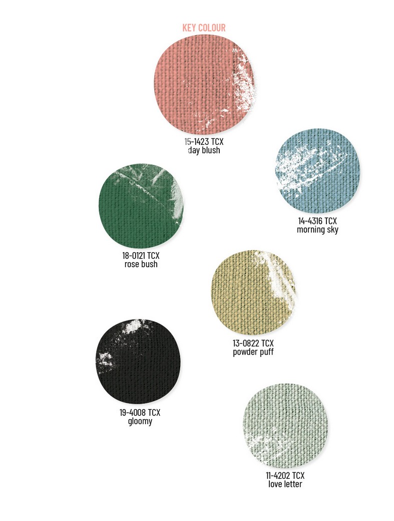 I toni di Sentimental giocano con le luci e i pastelli, tra verdi muschiati, rosa ambrati e azzurri cerulei alternati a bianchi e neri.