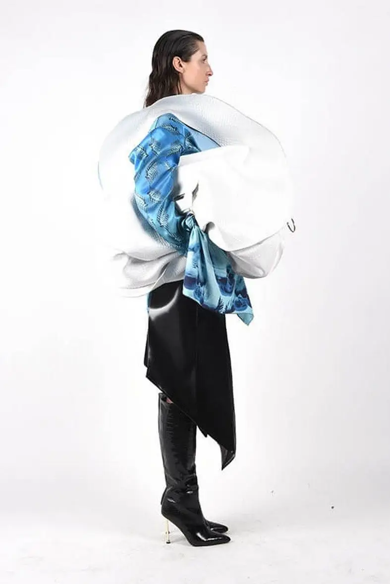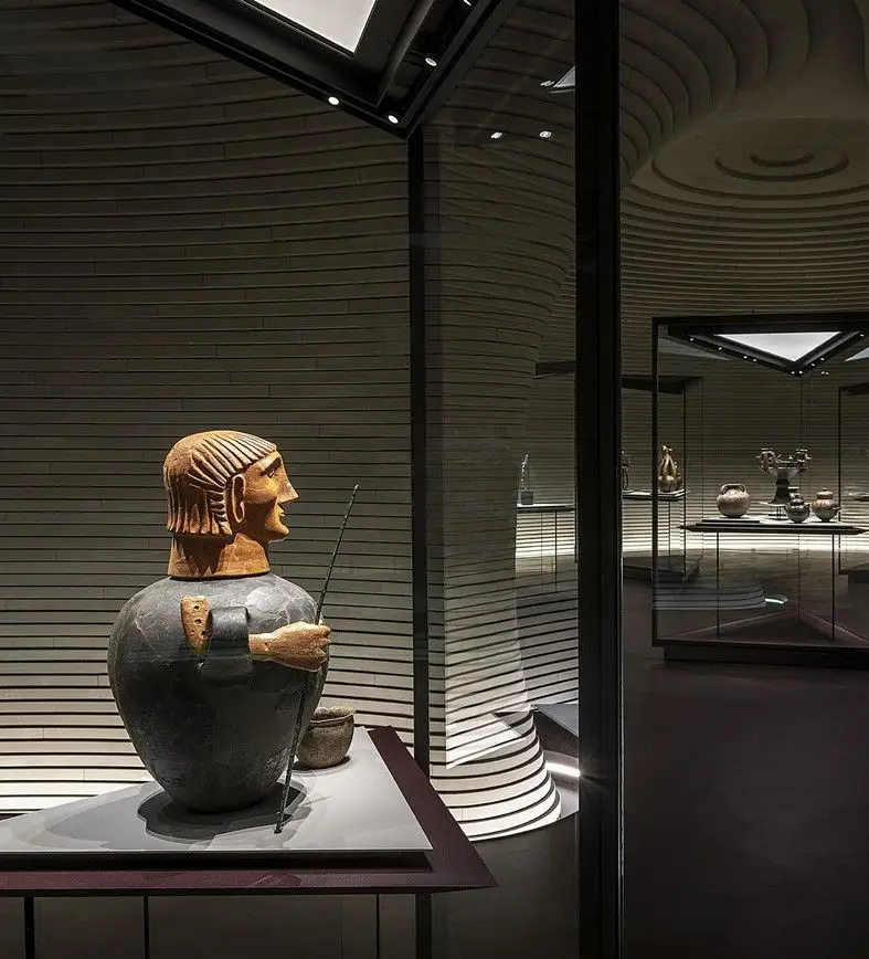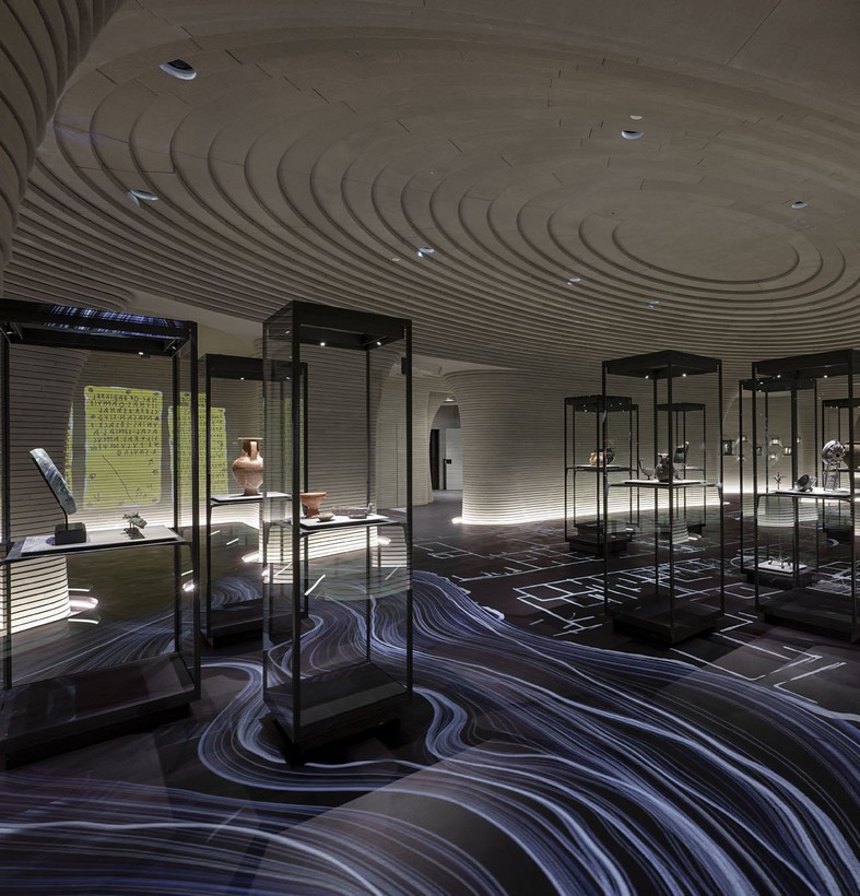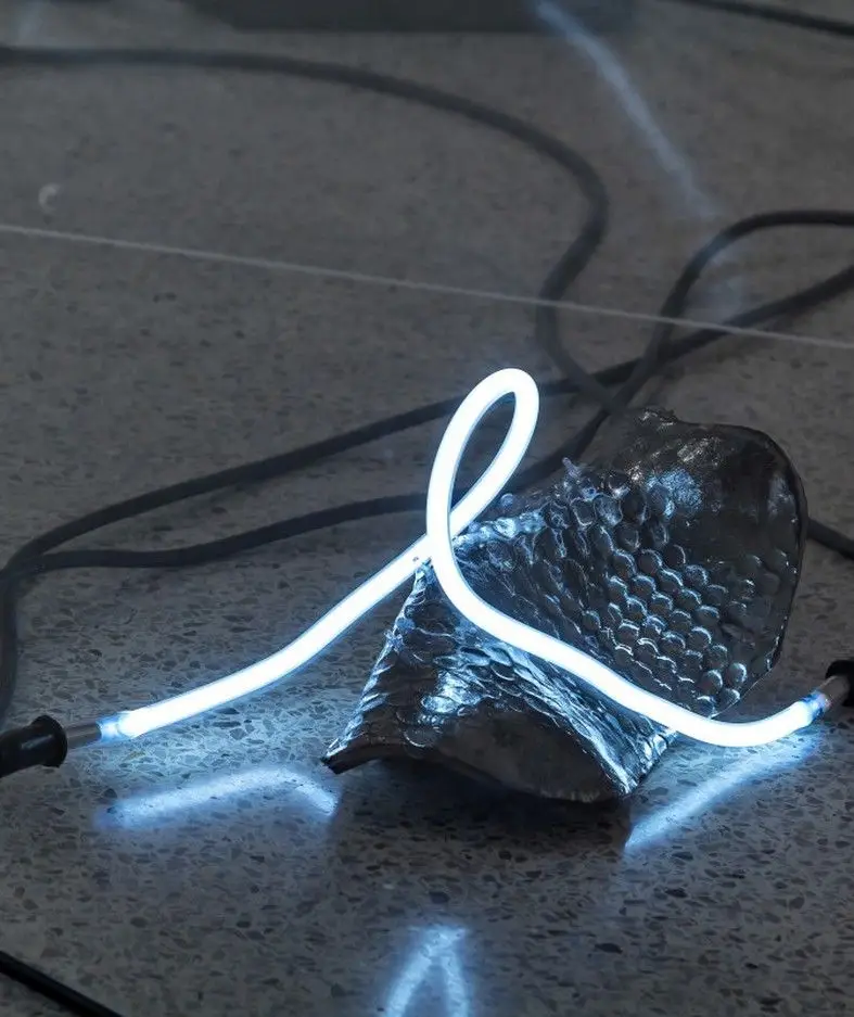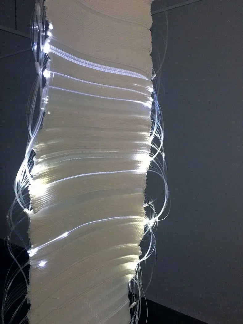I nuovi codici multimediali dell’arte contemporanea disegnano, in Visualize the improbable, giochi di droni nel cielo, immaginando di ricostruire monumenti incompleti grazie alla luce. Quasi per annullare la distanza tra la storia remota e un mondo virtuale che spesso spaventa, vetuste costruzioni architettoniche, andate distrutte o non finite, si completano illusoriamente attraverso sofisticate protesi luminose. Moderni linguaggi digitali e ricordo del passato si incontrano. La tecnologia diventa presenza positiva, ergo, luce. Si trasforma in qualcosa che ricostruisce e ricompone quello che manca, che rende visibile l’inverosimile, un elemento costruttivo e visionario a un tempo. Ancora, spazi espositivi futuristici accolgono arcaici vasi e canopi etruschi. Opere millenarie riacquistano le parti mancanti grazie a stampe 3D, guadagnando un nuovo valore estetico ma anche funzionale. Statue create tramite intelligenza artificiale richiamano resti distorti di vestigia classiche. Video mapping, proiezioni luminescenti creano pattern e ologrammi su facciate di cattedrali e palazzi ma anche su abiti, dando vita a movimenti illusori nei drappeggi di tessuto. Contrasti e giochi d’ombra fanno da sfondo a matrimoni felici tra antico e contemporaneo.