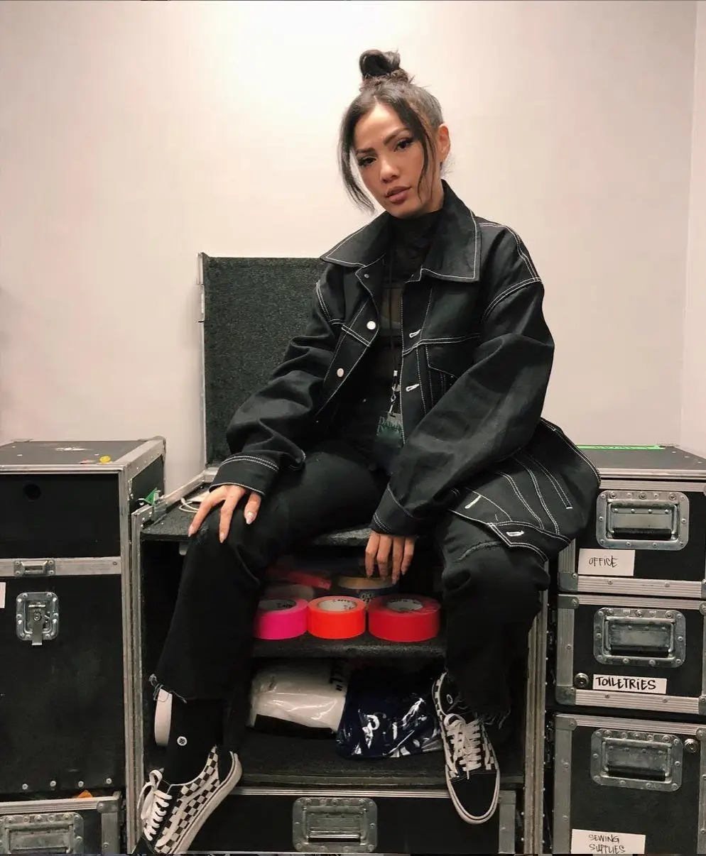 ragazza con outfit sportivo seduta su set da concerto