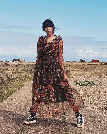 ragazza con abito floreale e All Star
